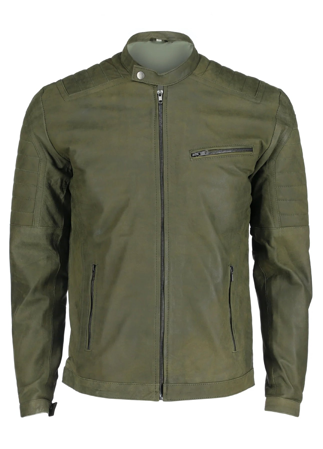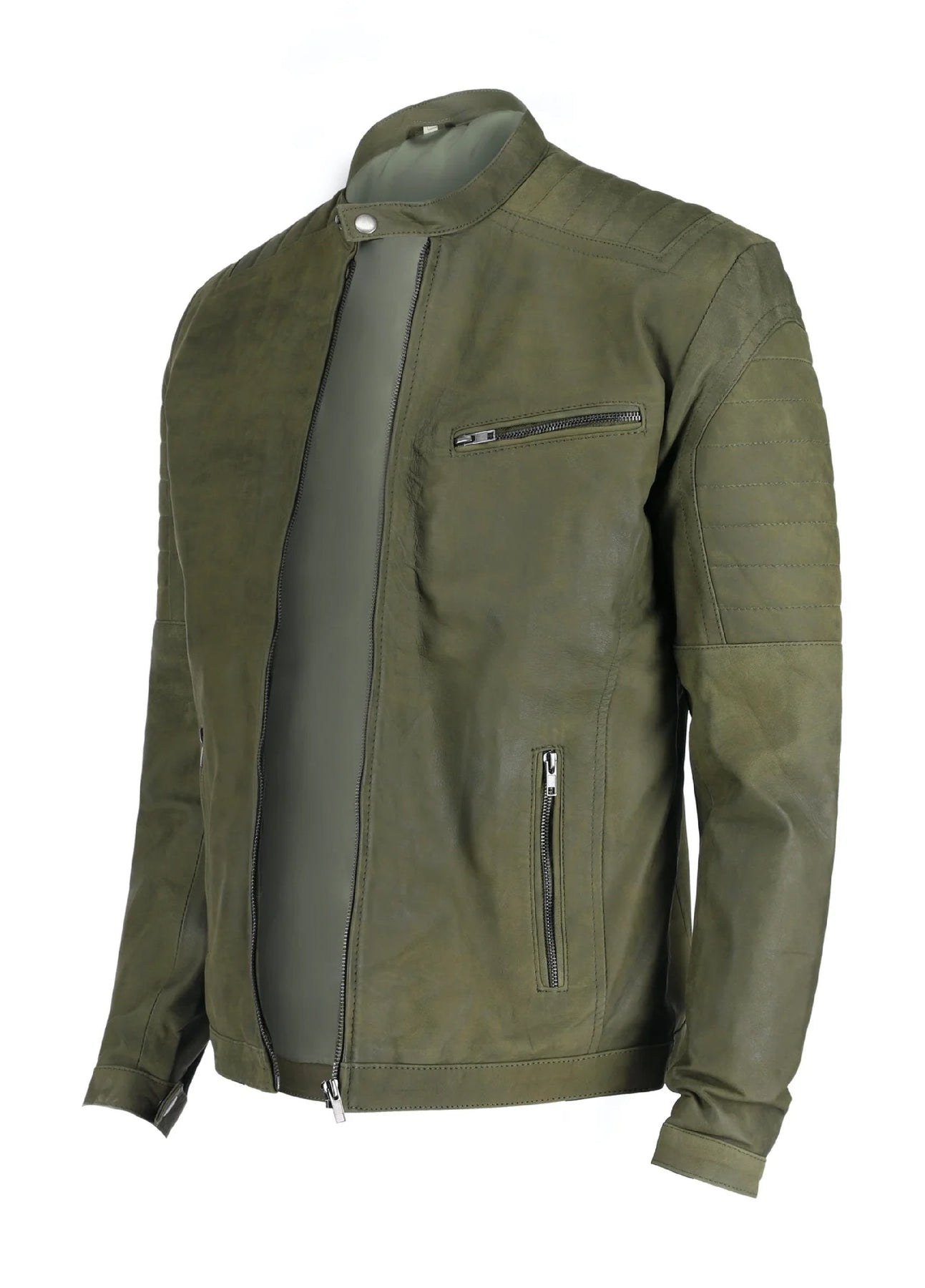 This Mens Green Classic Fashion Buff Soft Real Leather Jacket Handmade and crafted from soft lambskin leather buffed for velvety touch . It comes with a simple and classy design and features, front zip fastener,front zipper pockets ,snap button collar, and a modern fit.