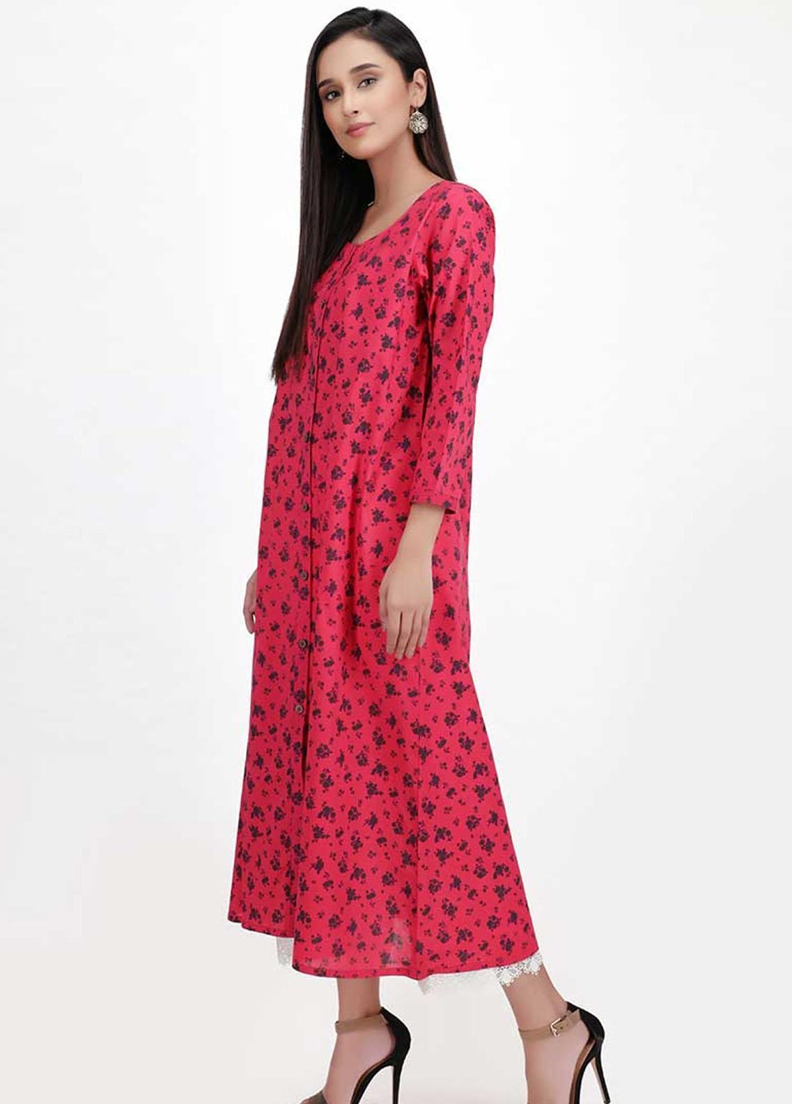 Pink delight is available in soft cotton fabric. Features an umberalla cut frock with button detail.