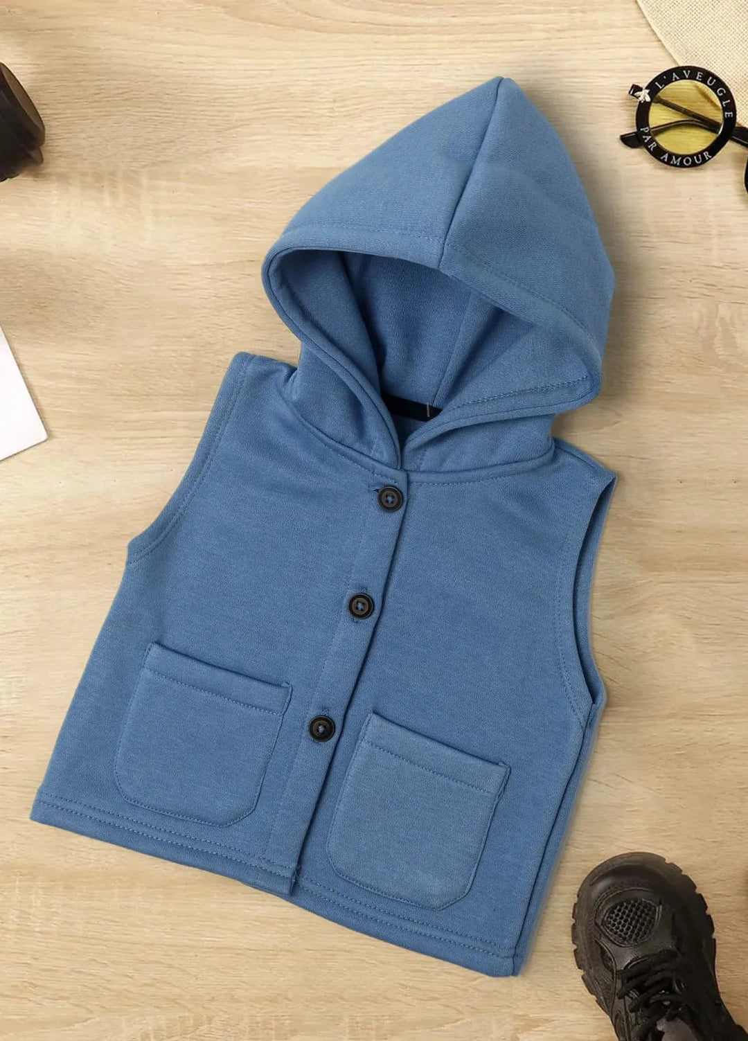 Baby Nest Fleece Hooded Vest Blue-1336