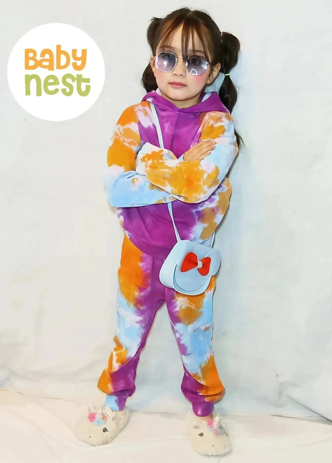 Baby Nest Premium Hoodie Set Tie Dye Multi Purple-1346
