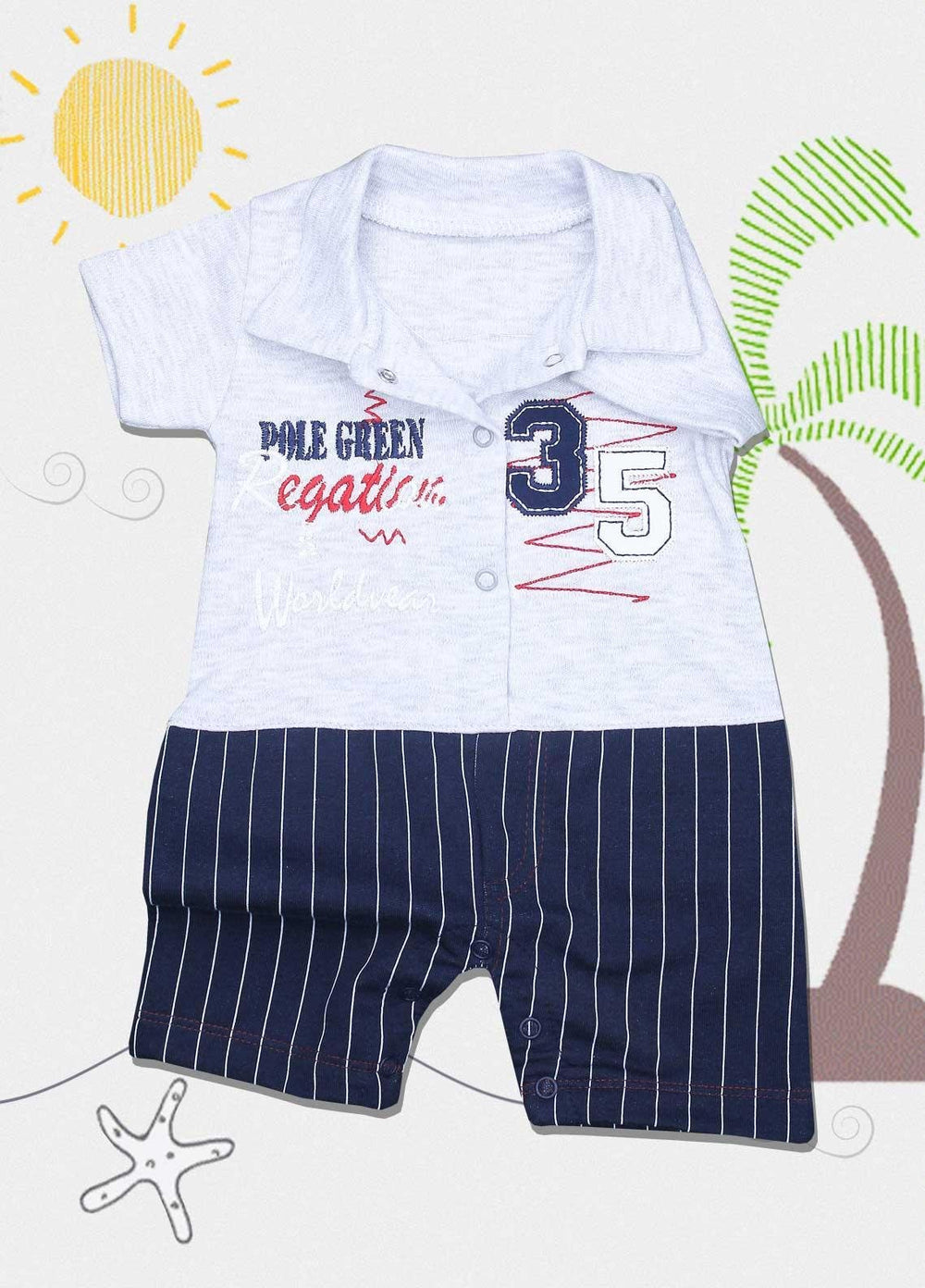 Sanaulla Exclusive Range Cotton Fancy Pret Romper for Kids - 3028 Sk-Blue