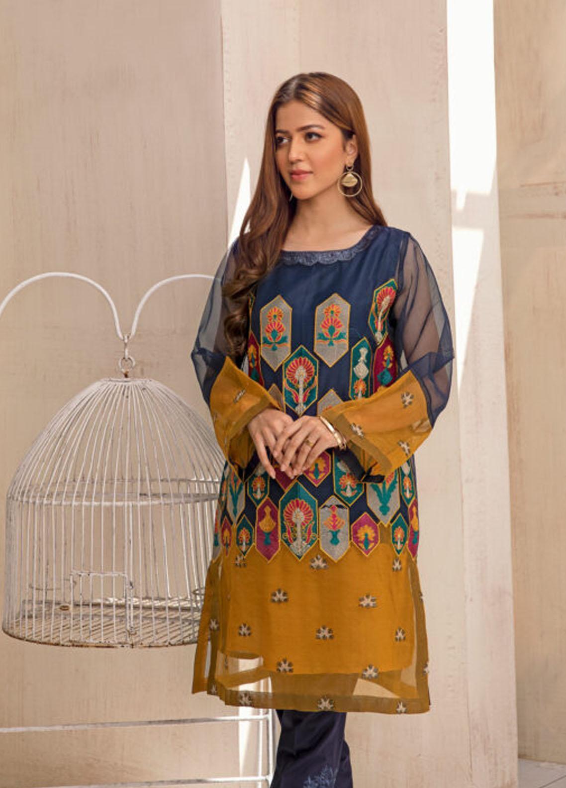 Kross Kulture Luxury Pret Organza Shirt KX-21265 Navy