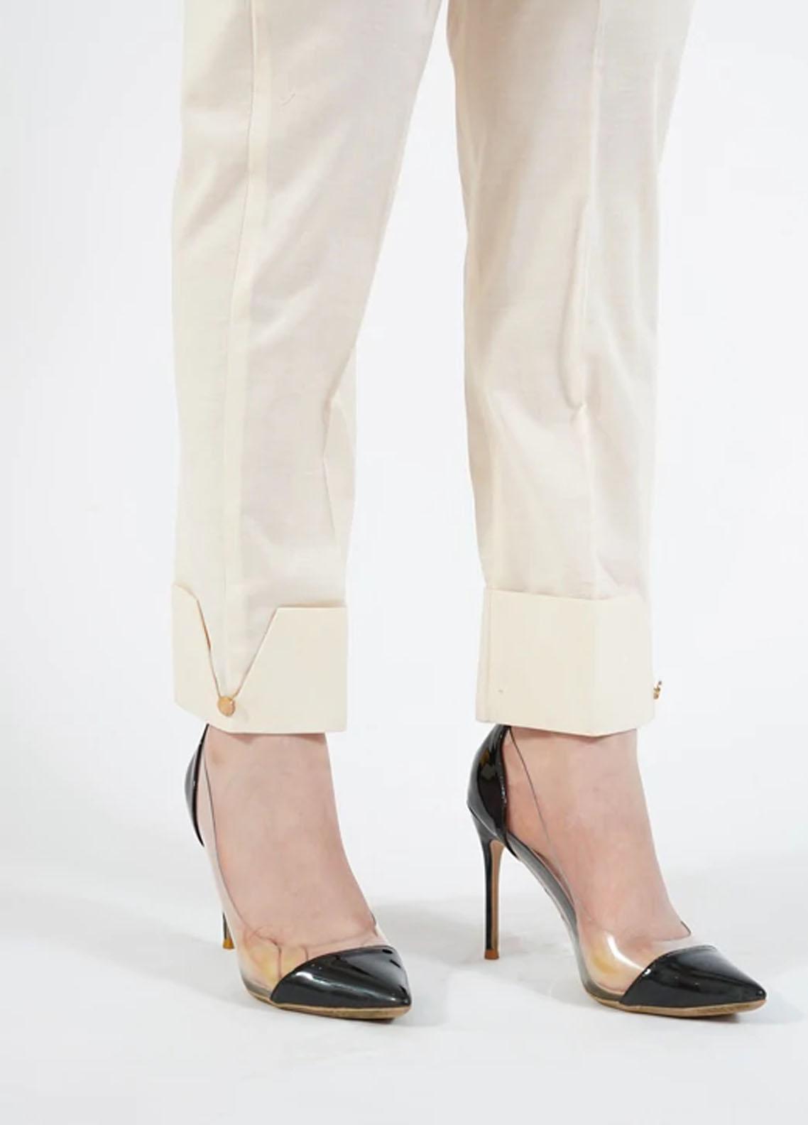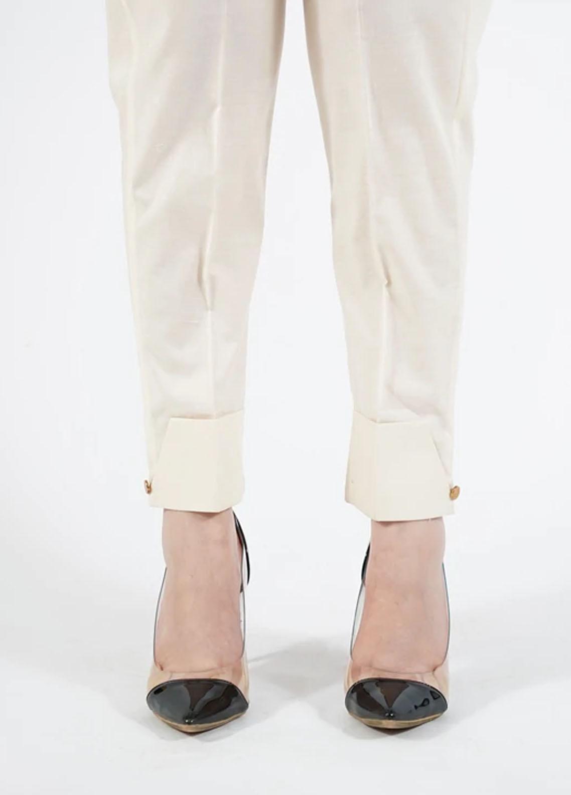 A Wardrobe Must-Have Is An Cream Cambric Trouser With A Folded Hem.