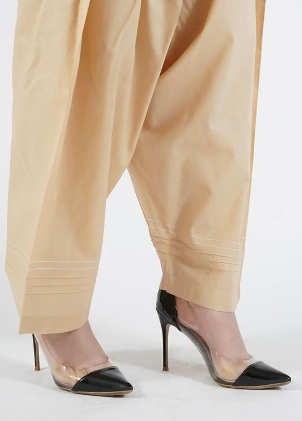 Sand Beige Shalwar In A Simple Style With Stitching Details On The Hem.