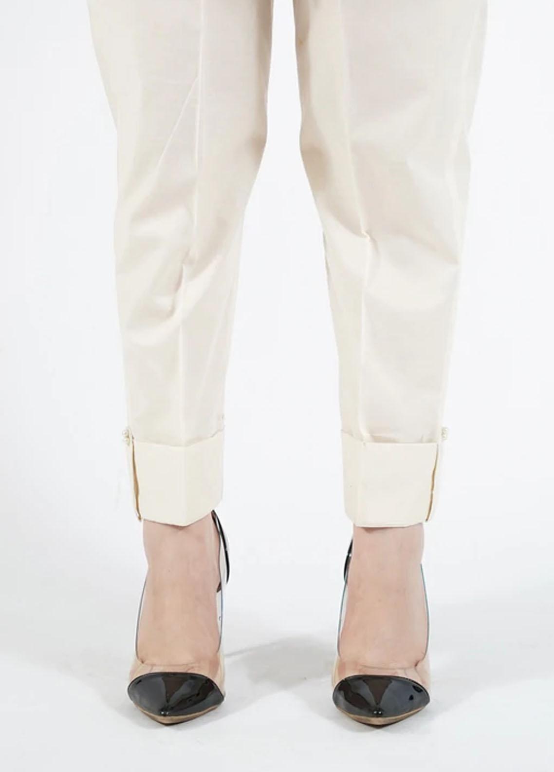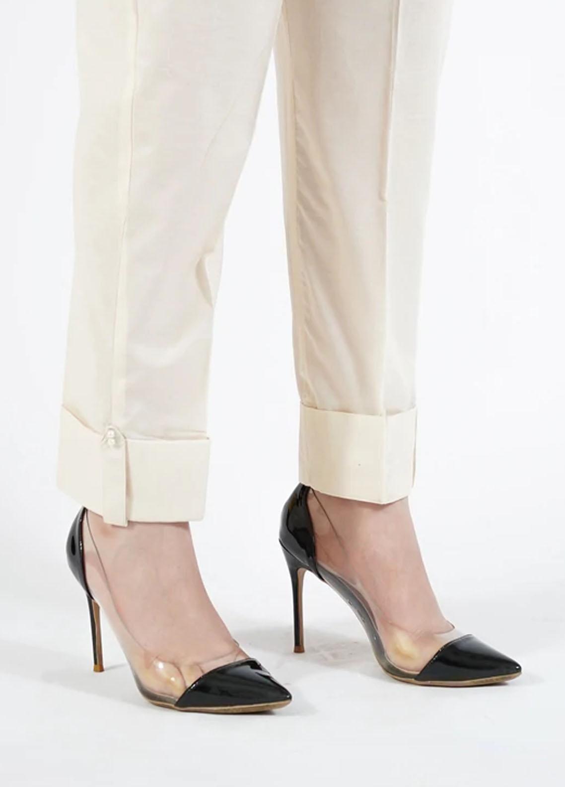 A Wardrobe Must-Have Is This CReam Cambric Trouser With Folded Hem.