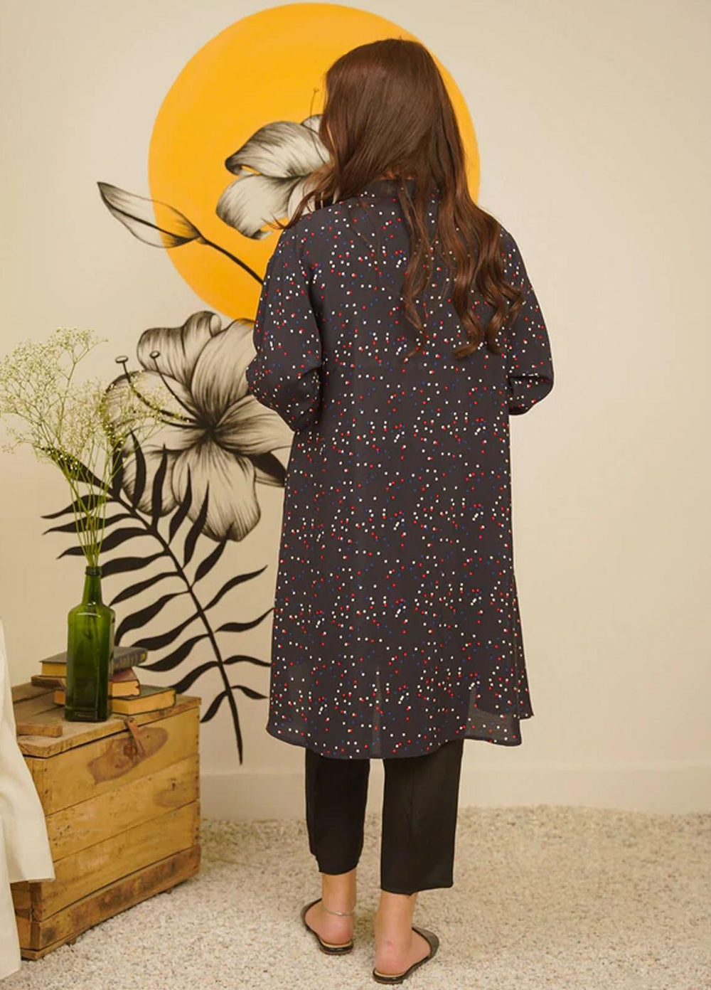 A Bold Impression Is Made In This Navy Frock With Pleated Panels And A Front Button.