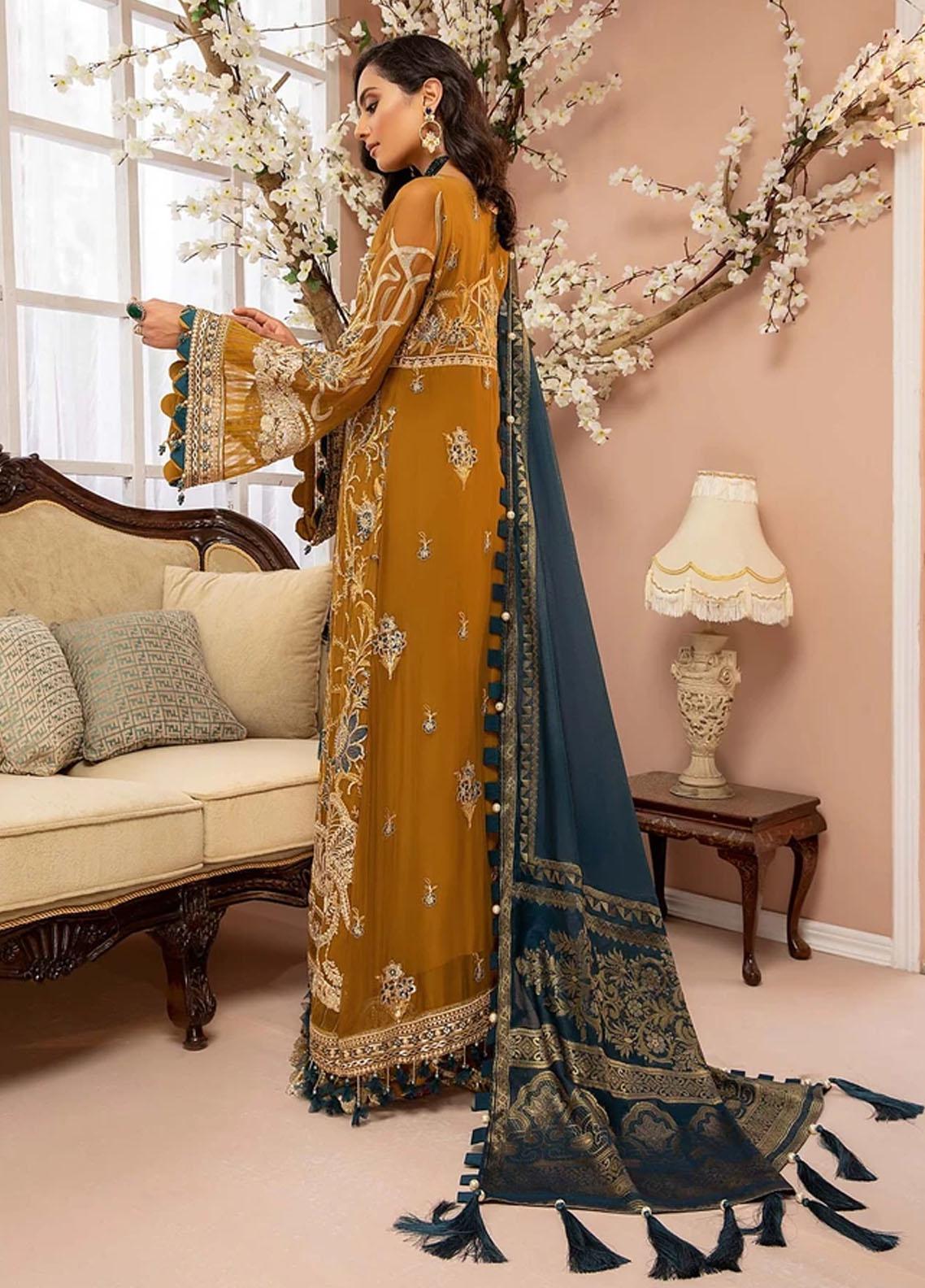 Luxulia By Adan's Libas Embroidered Chiffon Suits Unstitched 3 Piece AL21LC 01 Saffron Charm - Luxury Collection
