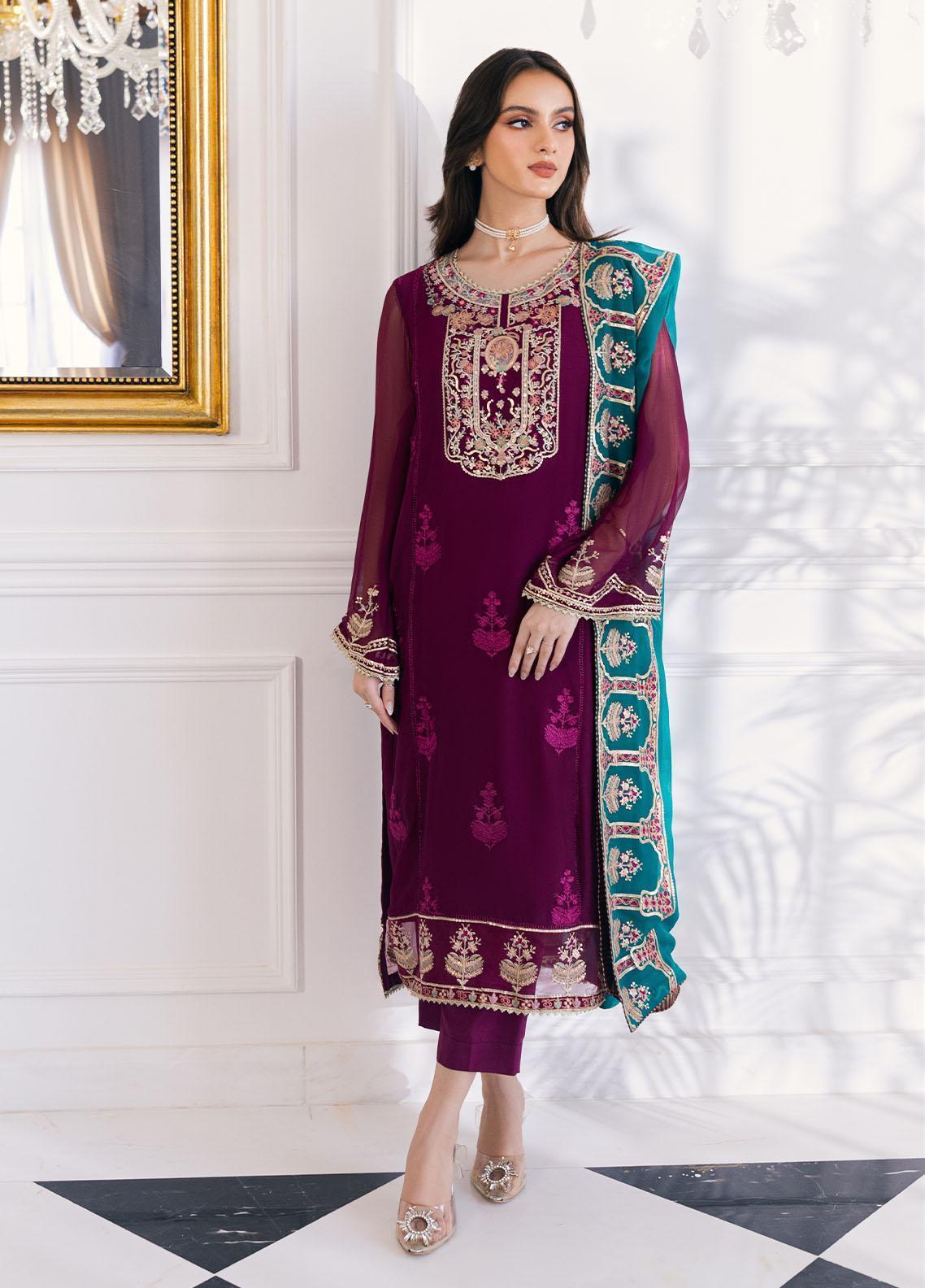 3 Piece Embroidered Chiffon Suit