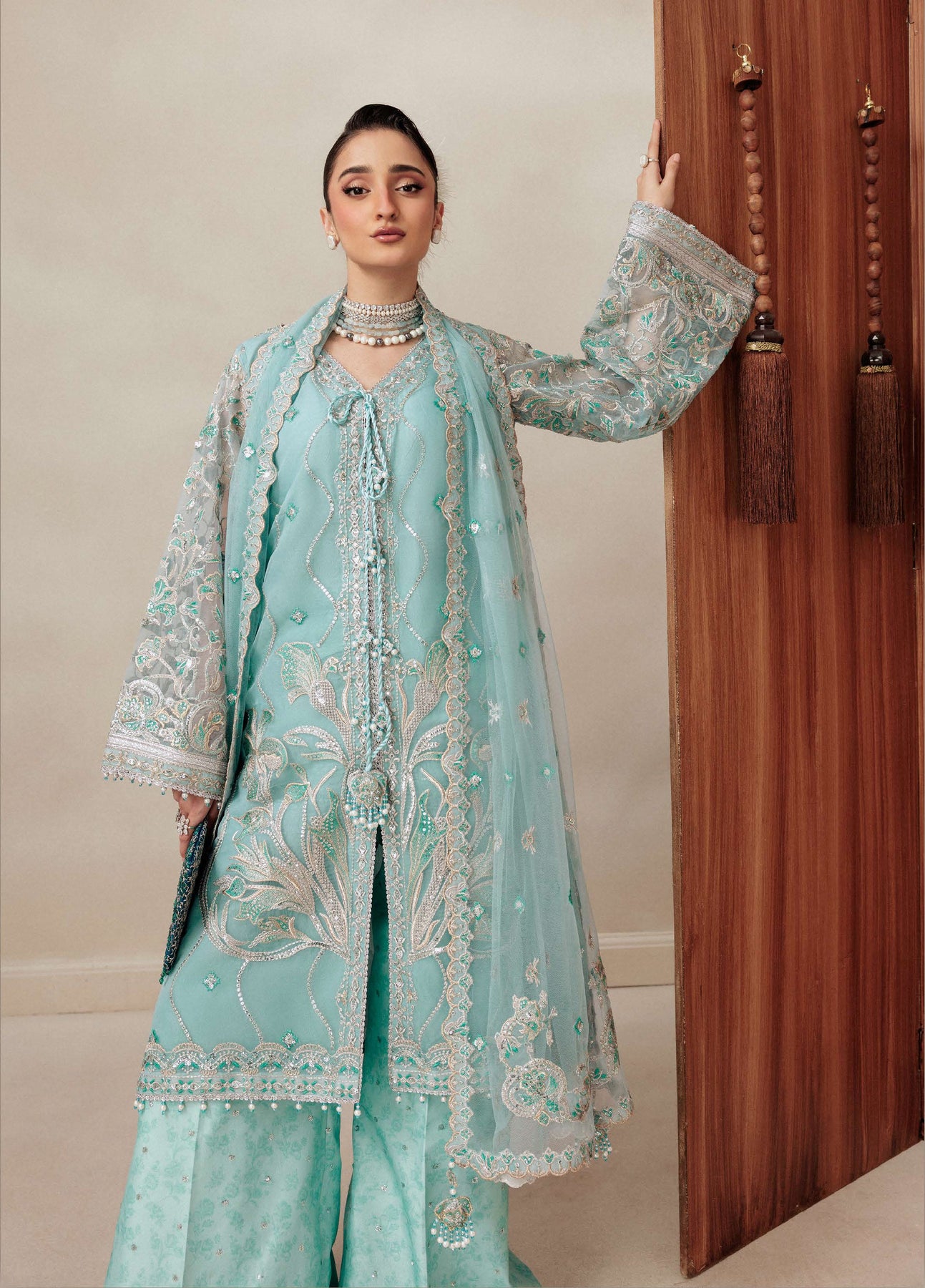 • Embroidered Organza Neckline Finishing