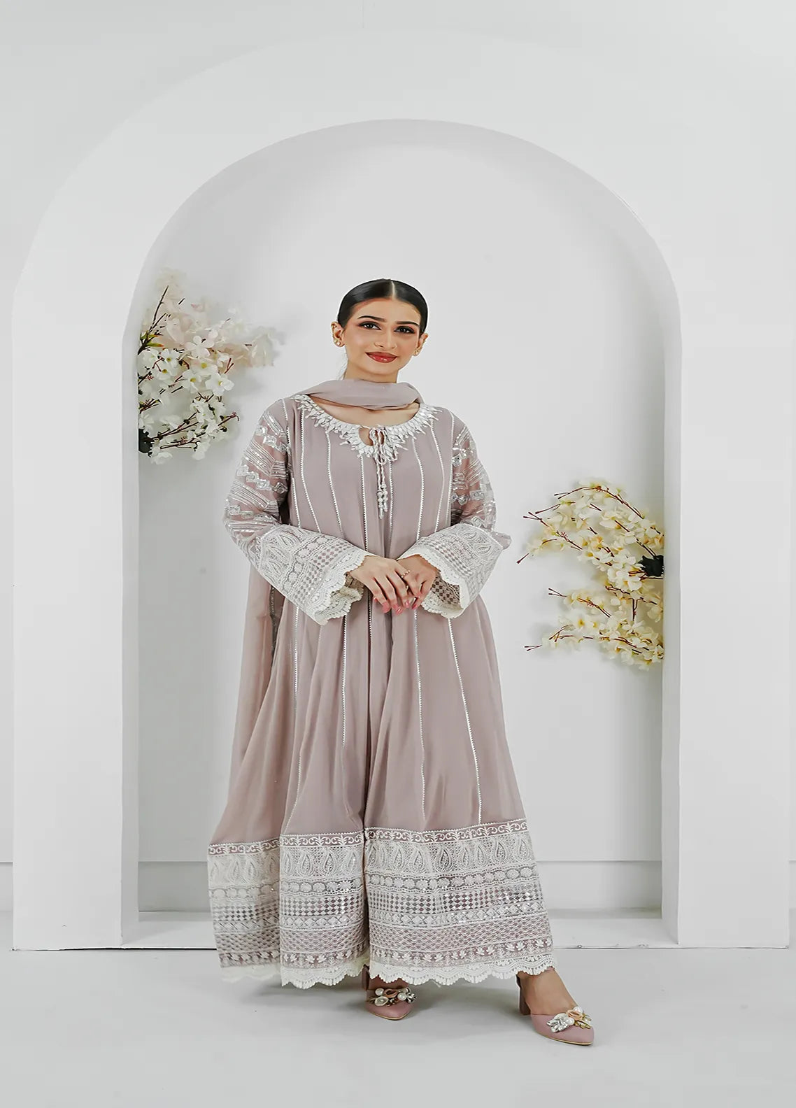 Manahils Pret Embroidered Chiffon 3 Piece Suit Kurti-121-Lilac