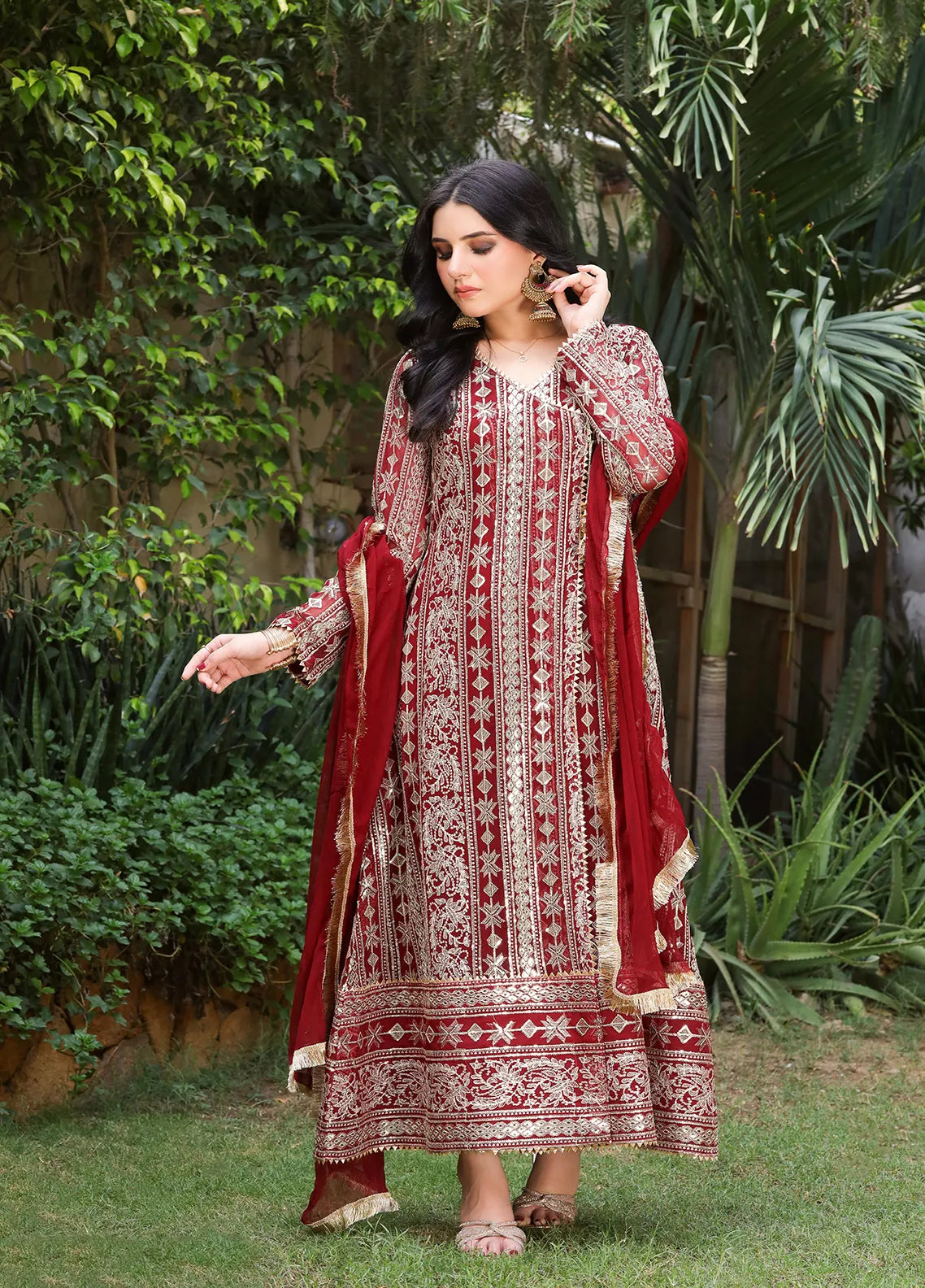 Manahils Pret Embroidered Chiffon 3 Piece Suit Kurti-122-Divine-Mehroon