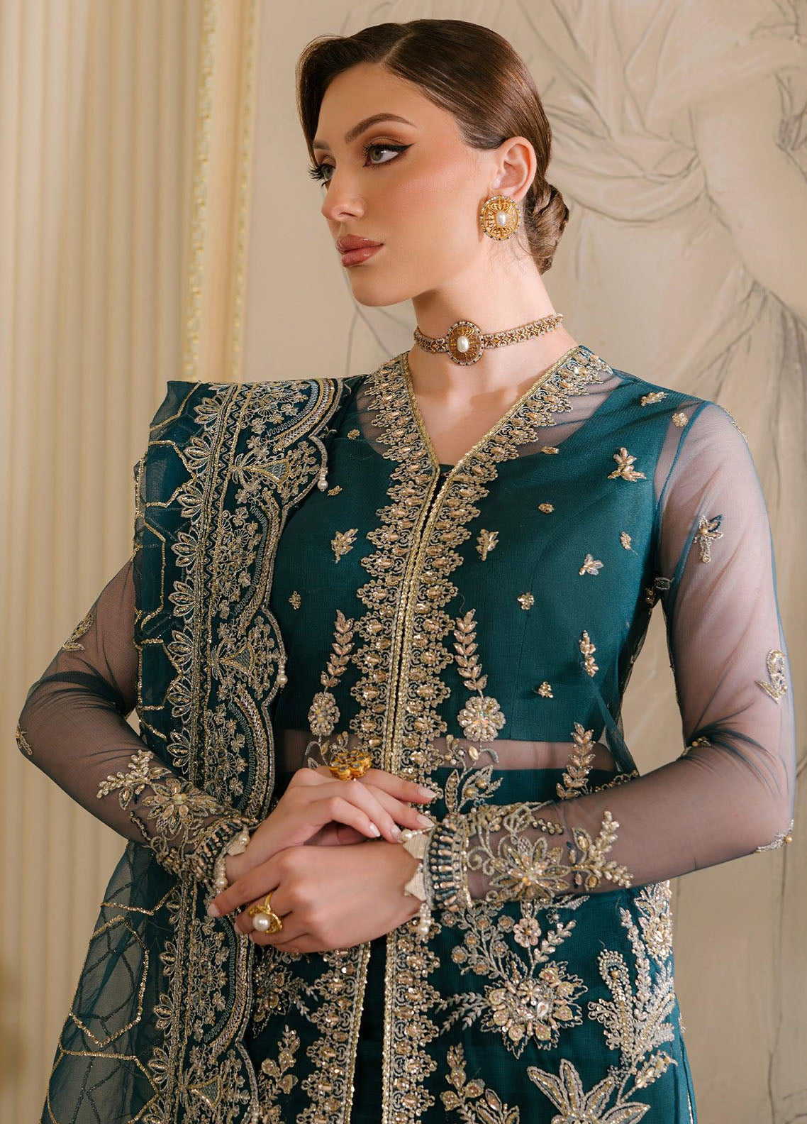 Embellished Pret Net 3 Piece Suit
