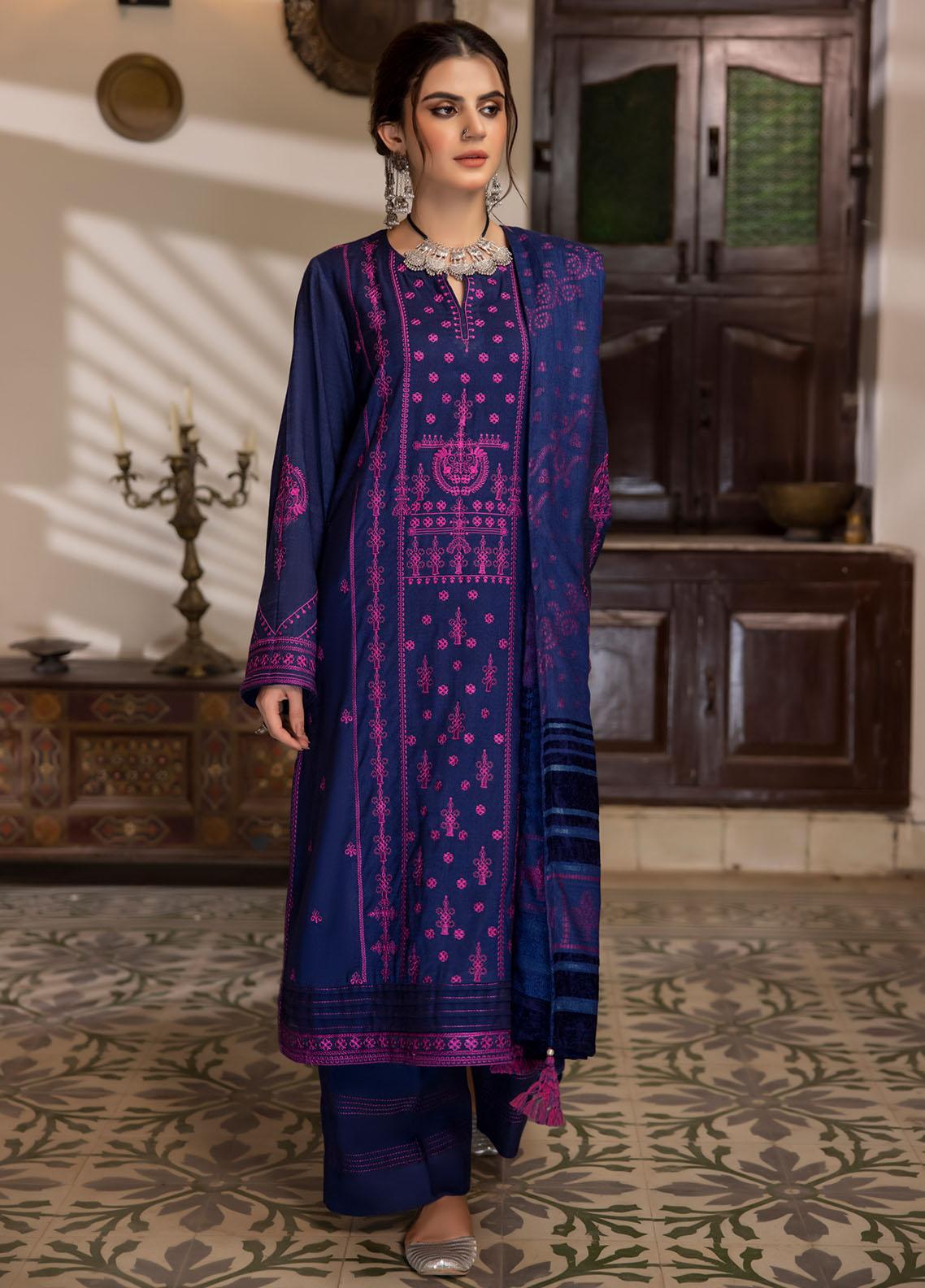 Lakhany Embroidered Slub Suits Unstitched 3 Piece LSM23WS LG-SR-0132 - Winter Collection