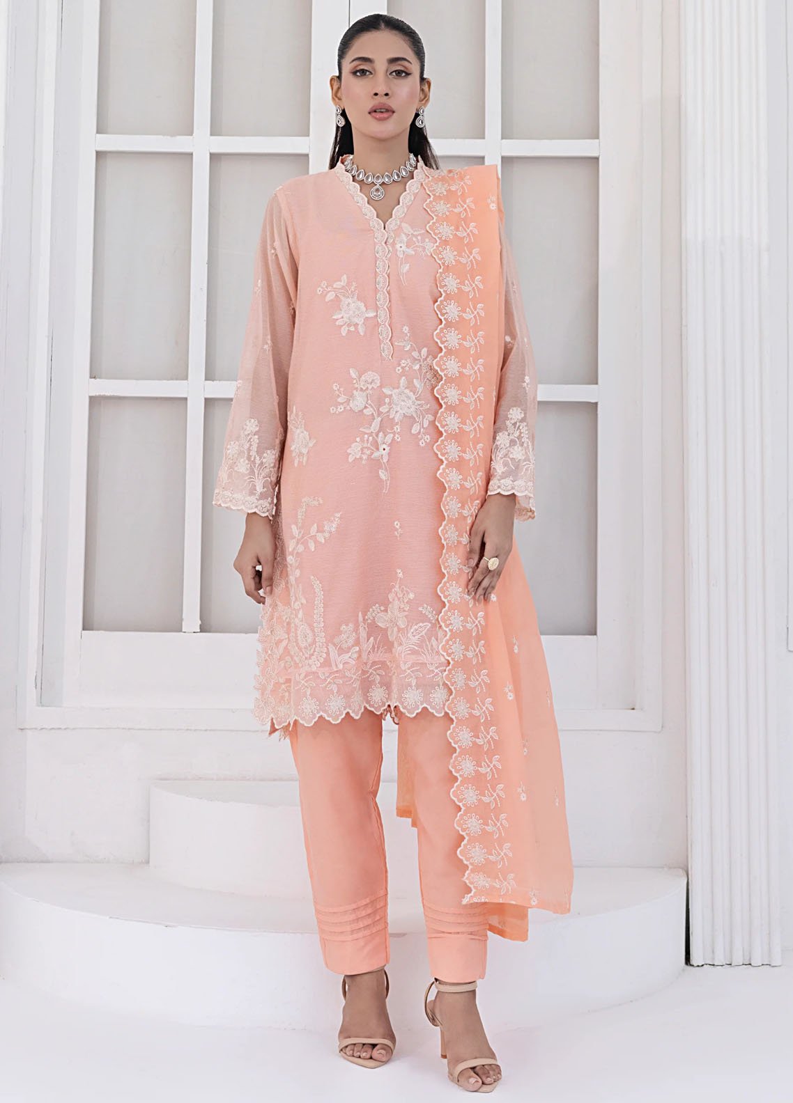 Embroidered Pret Khaddi Net 3 Piece Suit