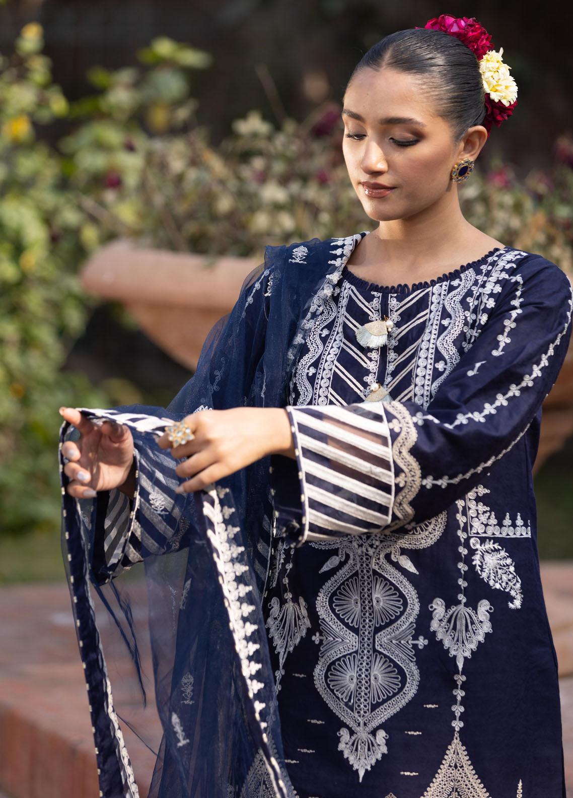 A sophisticated ethereal Sumbal is a fully embroidered suit, delicately embellished with white and beige , creating a spectacular contrast. Paired it with the embroidery poly net dupatta which give you the most royal look ever.