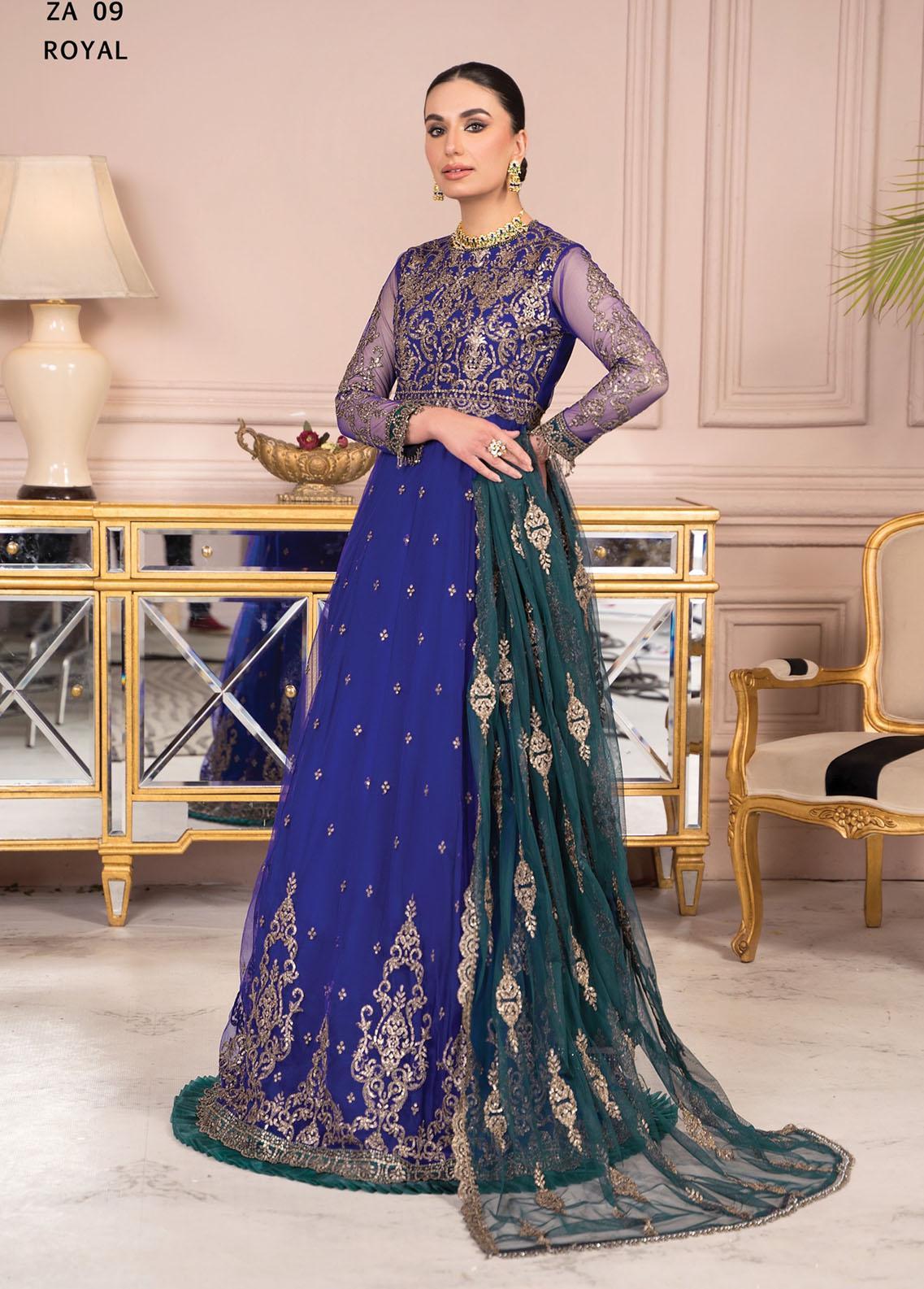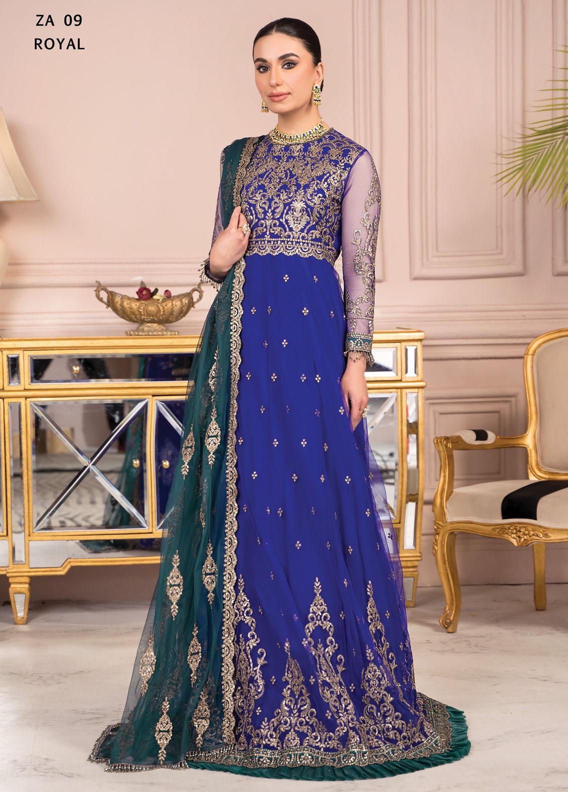 Afreen by Zarif Embroidered  Suits Unstitched 3 Piece ZF23A ZA-09 Royal - Formal Collection