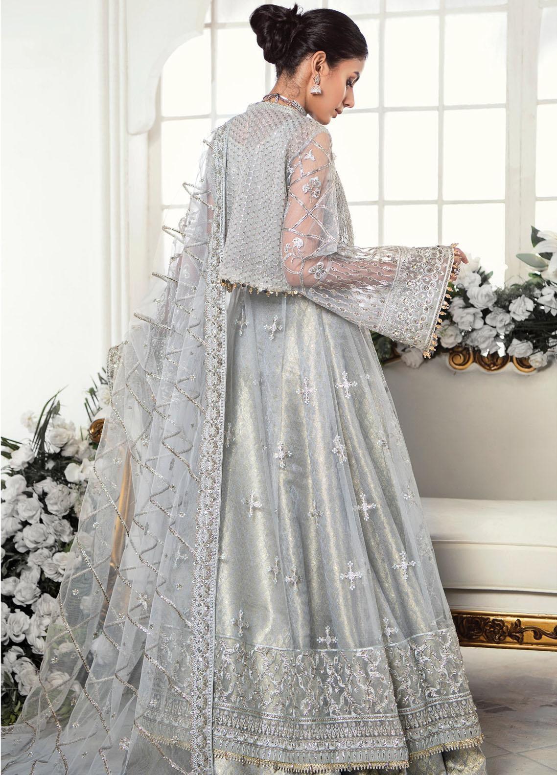 The idea of a perennial femininity has always been a contributing element for every luxury collection by the House including this one. That particular theme is effortlessly reflected in this majestic silver design with a blend of sequin encrusted jaals and crystal adorned embellishments crafted using a multitude of techniques.