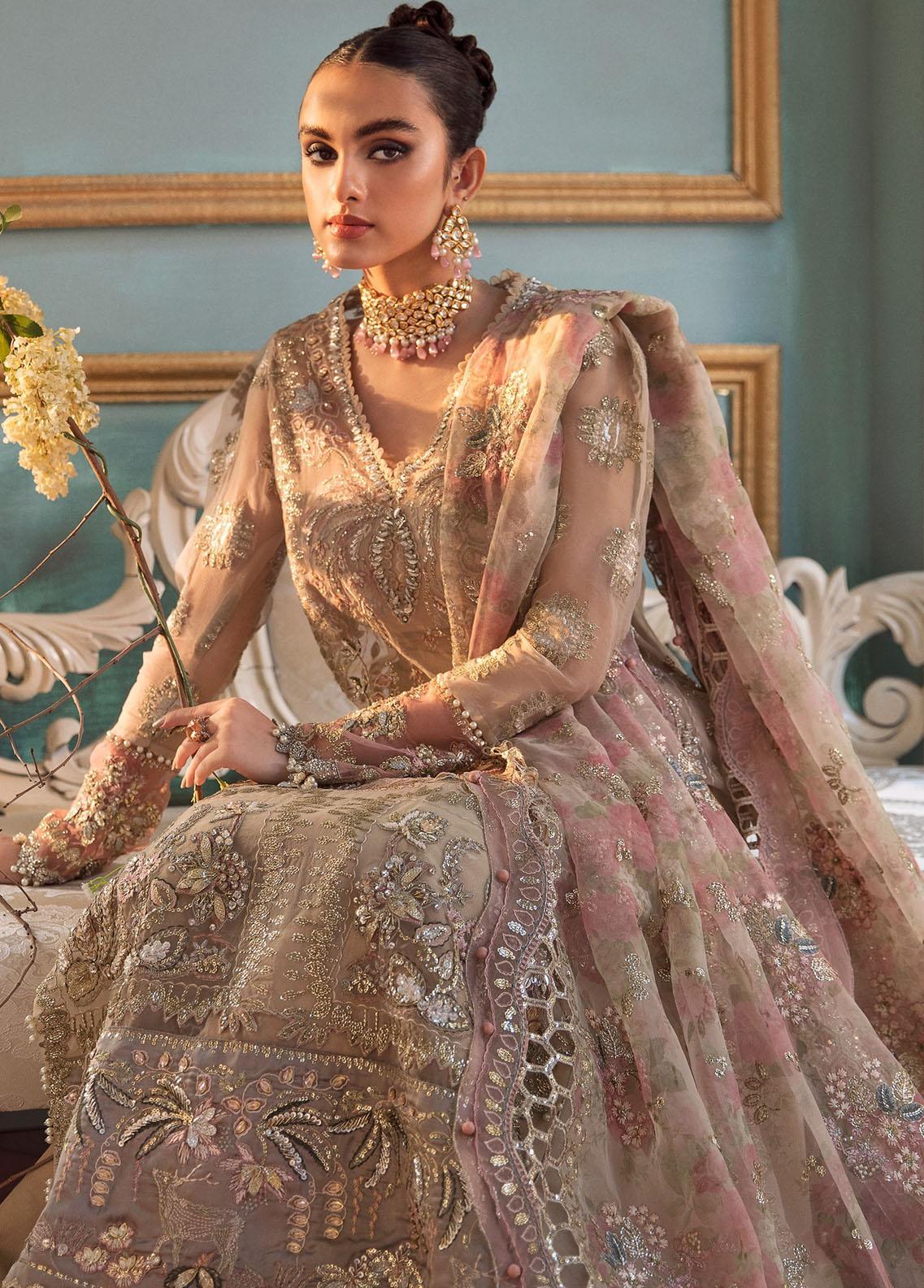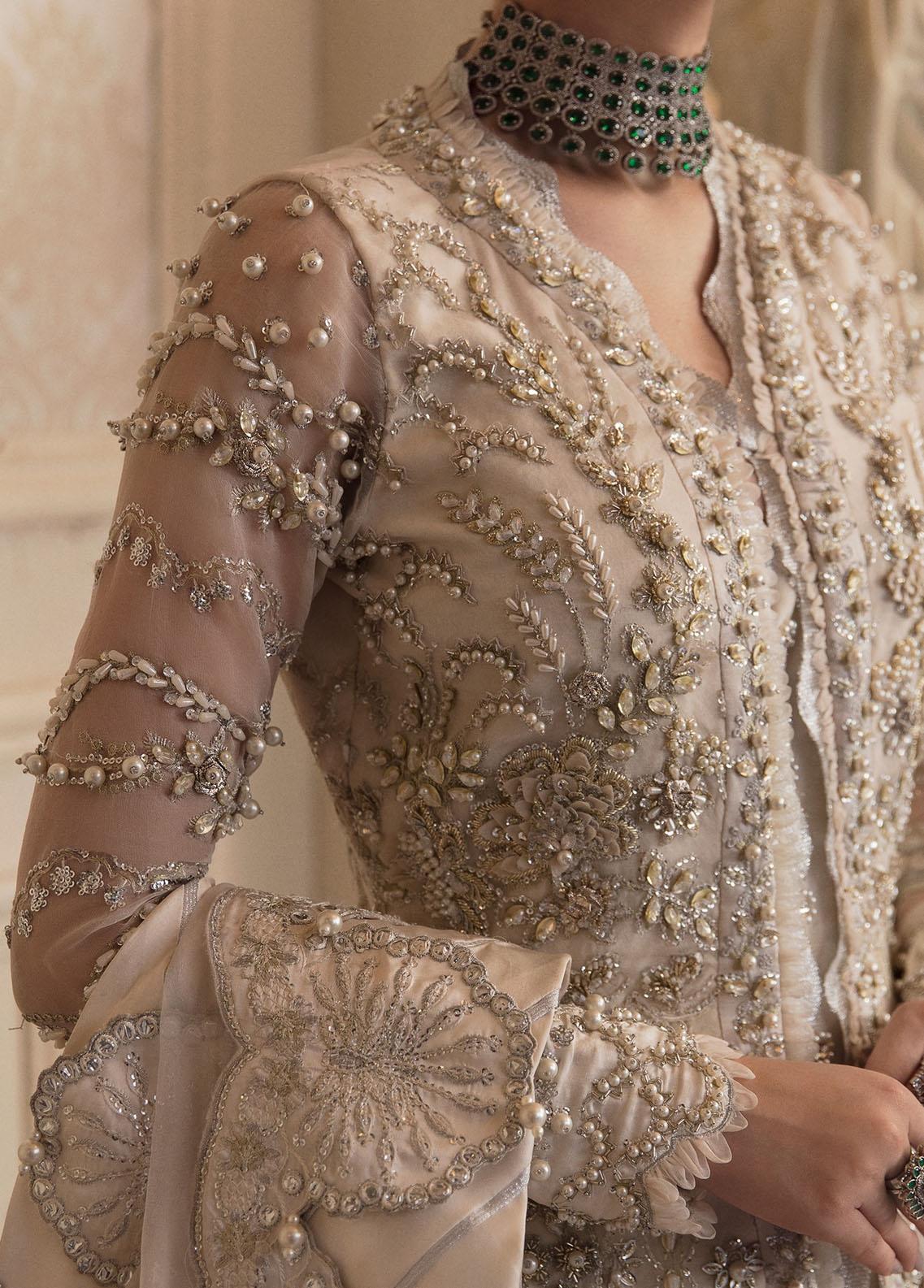 Un Lys The luxuriously frosted beige ensemble envelops the body in enthralling delicacy. Scintillating silver and mauve metallic threads and iridescent motifs make for an enchanting display of grandeur. The elongated shirt silhouette with beautifully composed side panels is worn over tonal lehange and is paired with a digital printed floral oganza dupatta framed with detailed borders to make for an effortlessly elegant formal look.