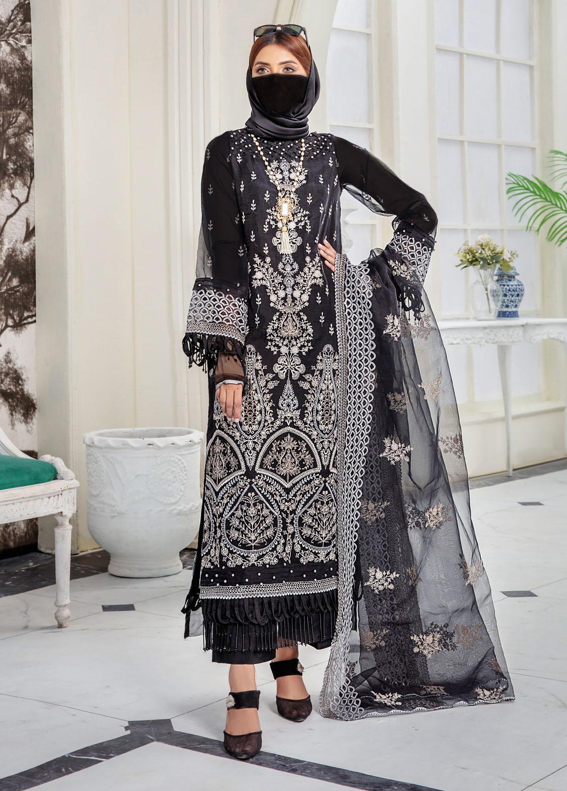 Hazel By Humdum Embroidered Organza Suits Unstitched 4 Piece HD22HO DE-01 - Luxury Collection