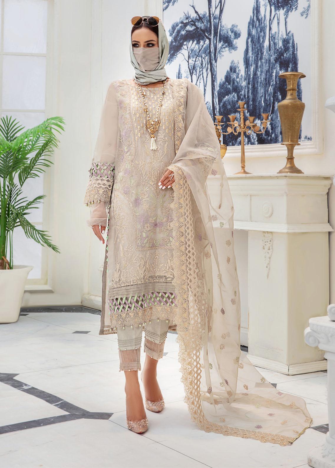 Hazel By Humdum Embroidered Organza Suits Unstitched 4 Piece HD22HO DE-03 - Luxury Collection