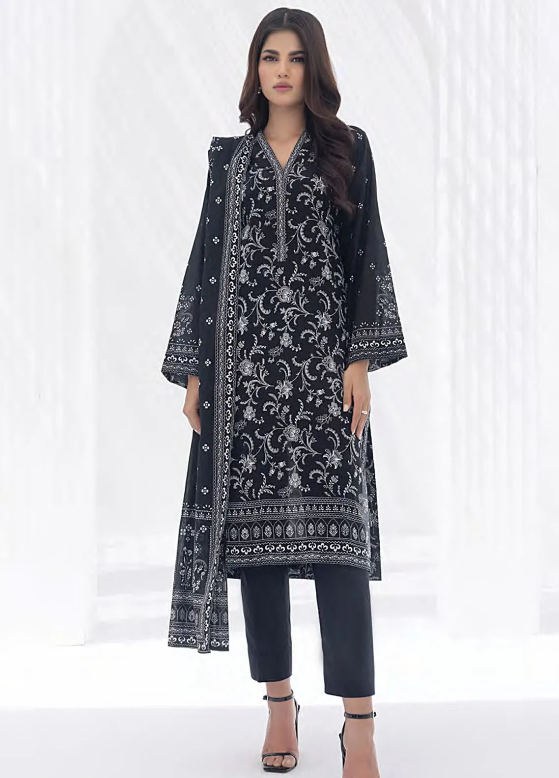 3 Piece Printed Unstitched Suits from Lakhany Monochrome Black and White Lawn Collection 2024