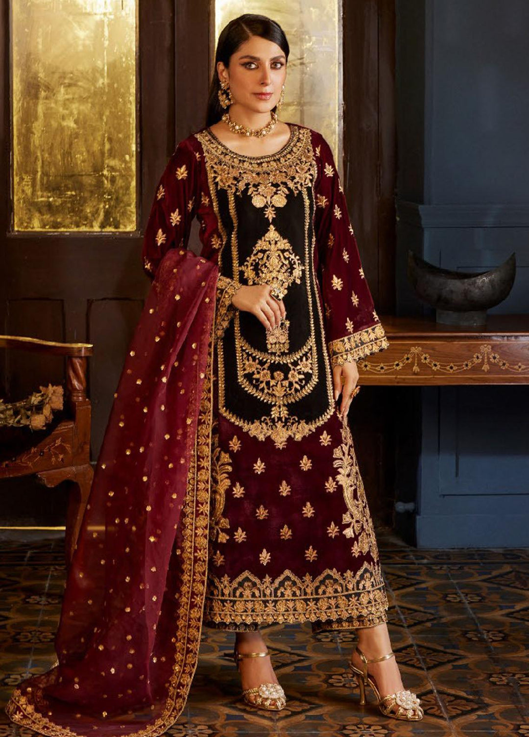Zainab Chottani Embroidered Velvet Suits Unstitched 3 Piece ZC23UV D4 Amira - Luxury Collection