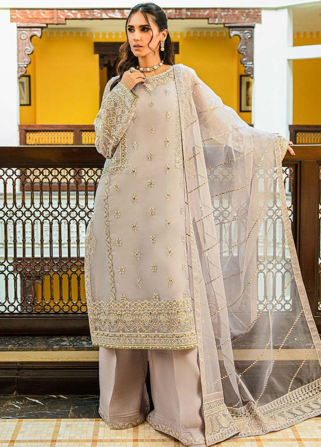 Elinor By Akbar Aslam Embroidered Organza Suits Unstitched 4 Piece Nolana - Luxury Collection