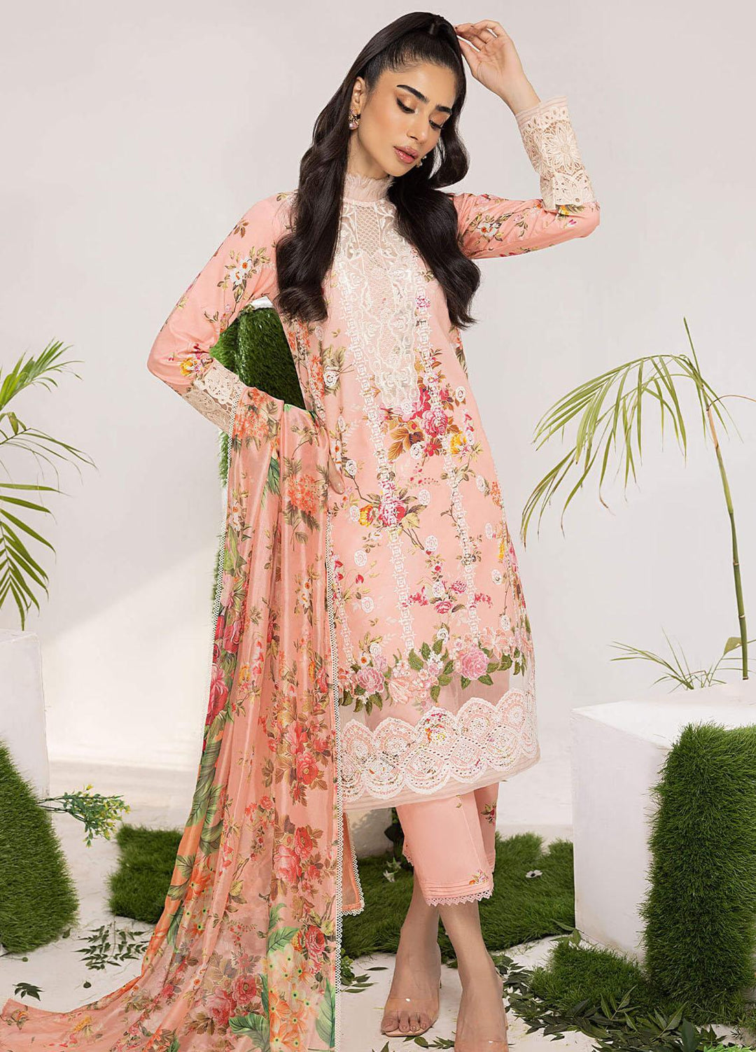 Aleyna By Asifa & Nabeel Embroidered Lawn Suits Unstitched 3 Piece AN23AL ALV-08 Peony - Summer Collection