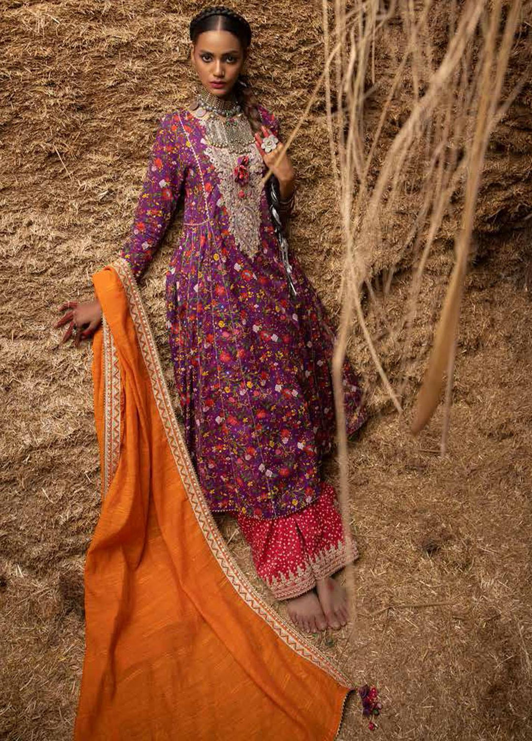 Hera By Xenia Formals Embroidered Chiffon Suits Unstitched 3 Piece XE22H 07 Fleur - Luxury Collection