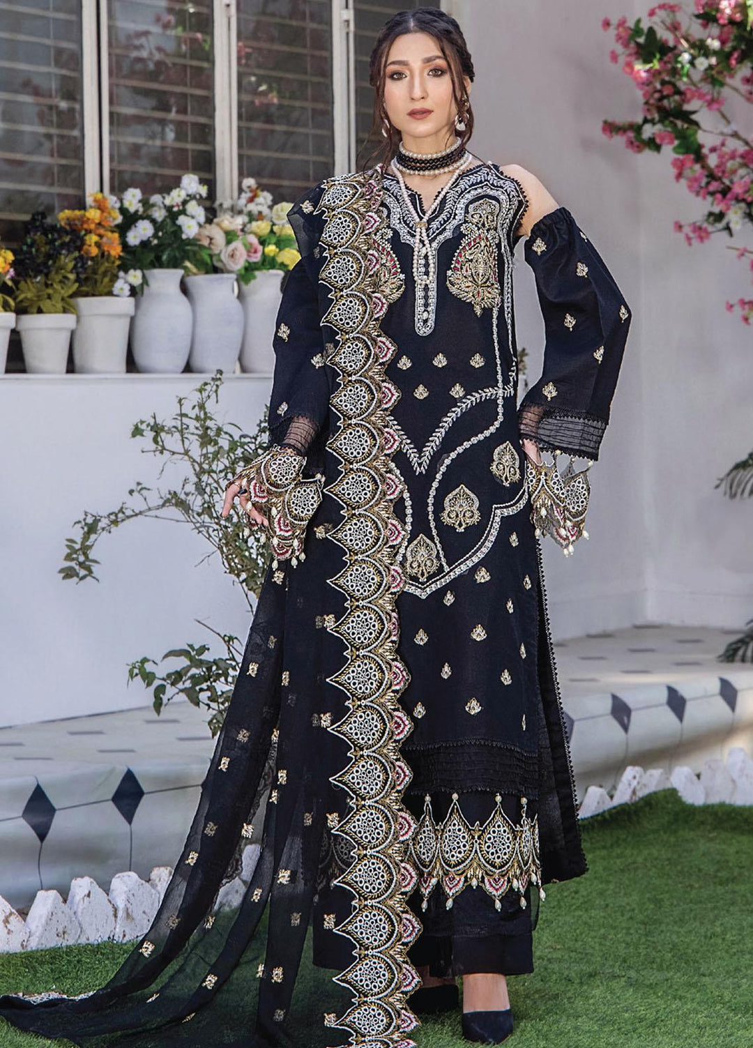 Uraan By Cross Stitch Embroidered Lawn Suits Unstitched 3 Piece CS23U Raven Coal - Premium Collection