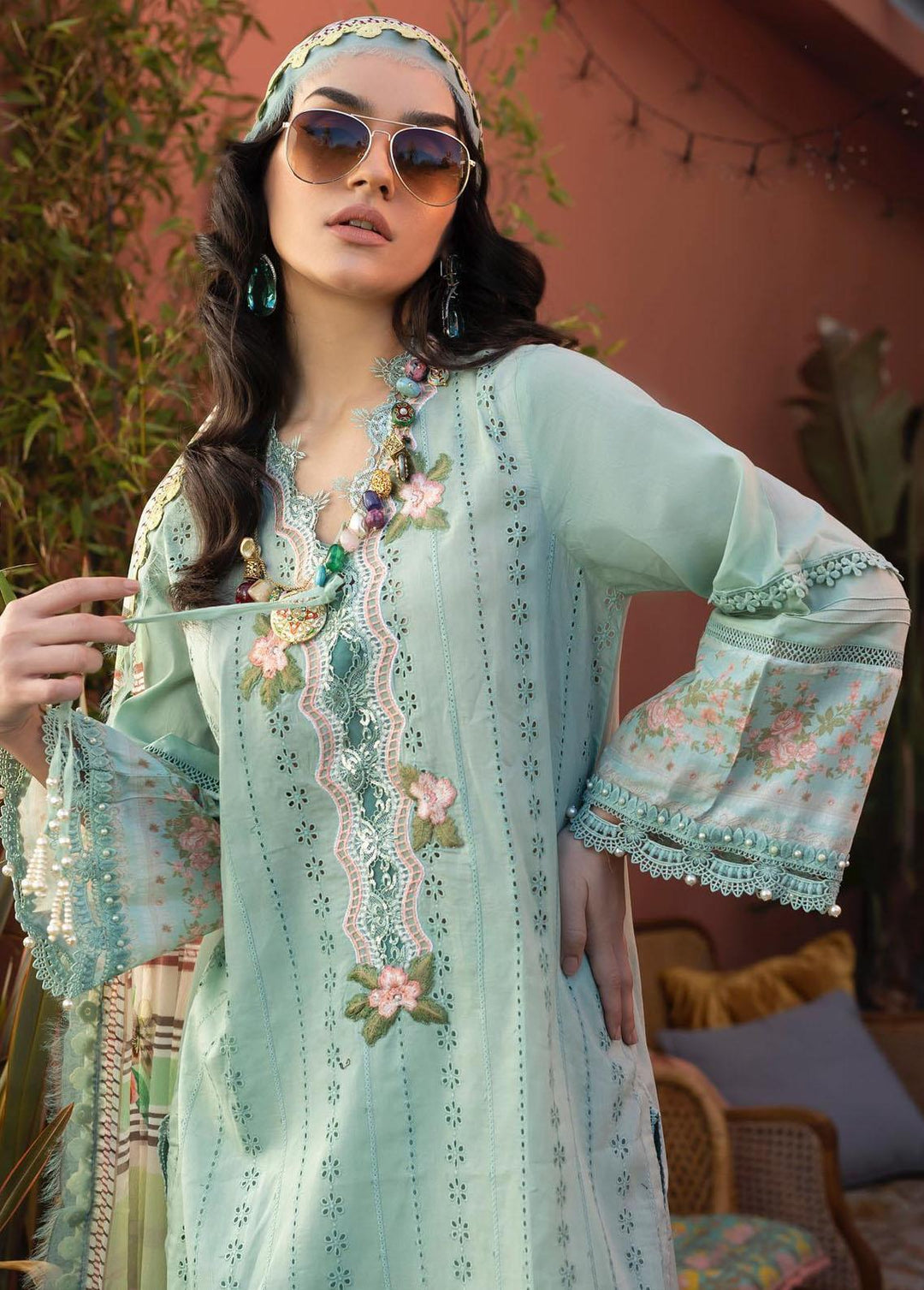 Afsaneh By Aabyaan Embroidered Lawn Suits Unstitched 3 Piece ABY23A AL-02 Saraab - Luxury Collection