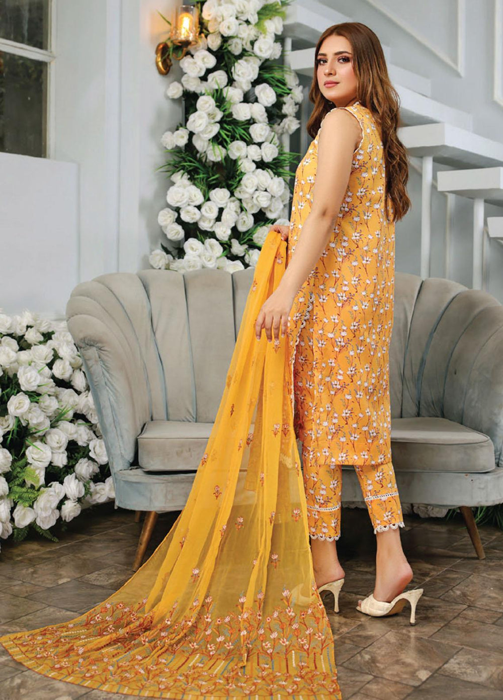 Al Karam Printed Lawn Suits Unstitched 3 Piece AK23SSL SS-7.1-23-Mustard - Summer Collection