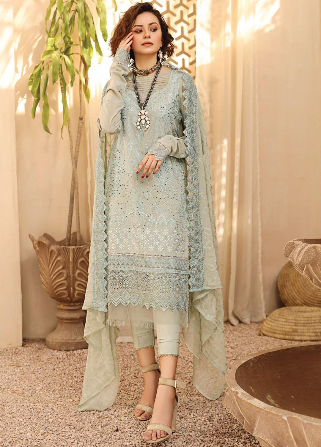 The Royal Palace By Nureh Embroidered Chiffon Suits Unstitched 3 Piece NU23RP NL-49 - Luxury Formal Collection
