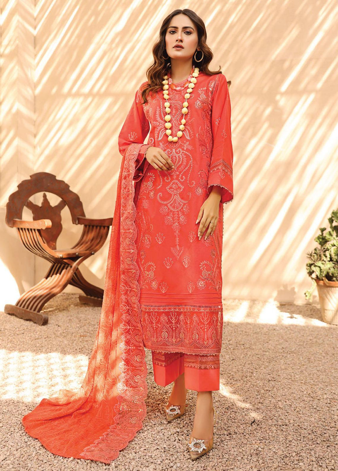 Lueur By Farasha Embroidered Chiffon Suits Unstitched 3 Piece FSH23L 07 Rosette - Luxury Collection