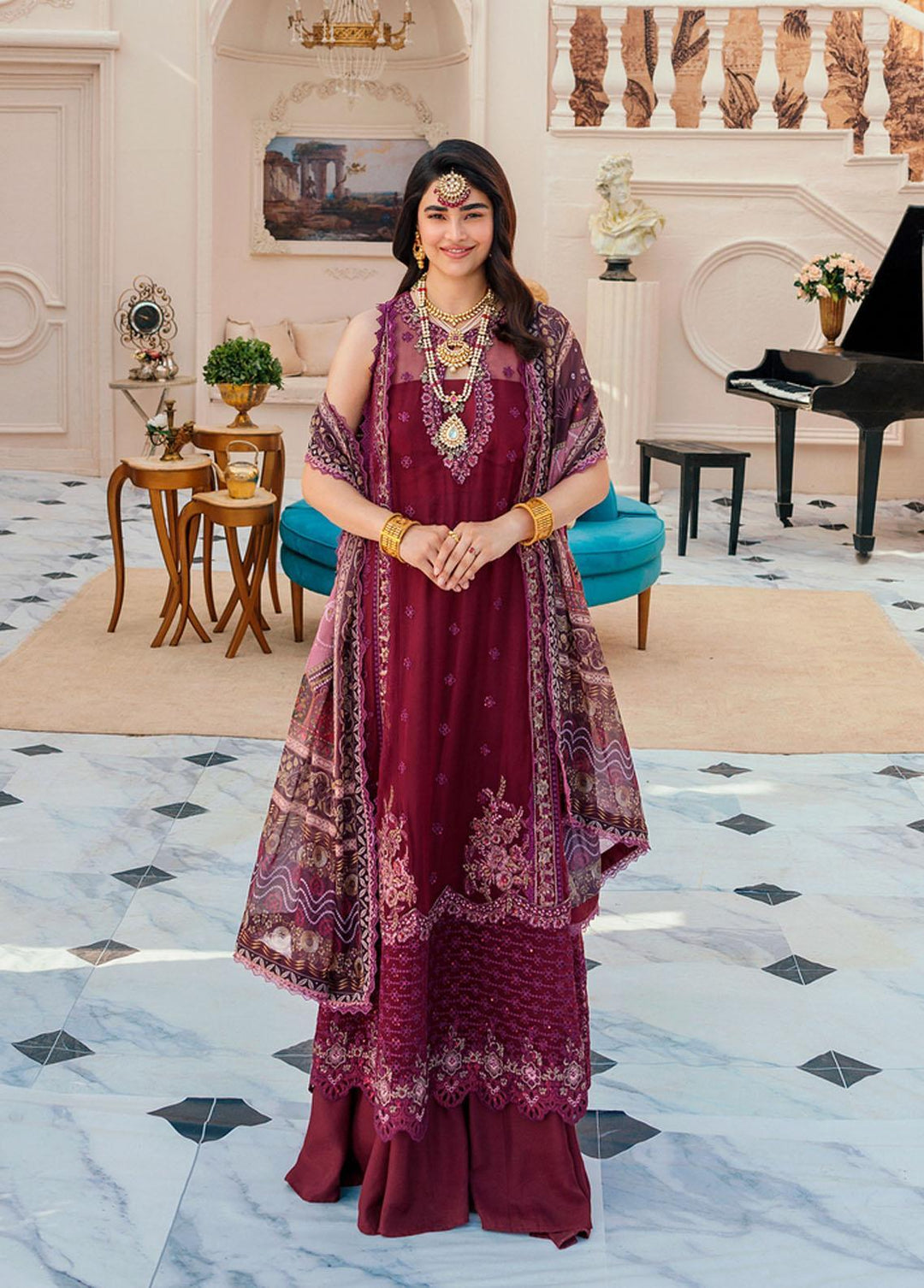 Paar by Hussain Rehar Embroidered Organza Suits Unstitched 3 Piece HRR22F Ruby - Festive Collection