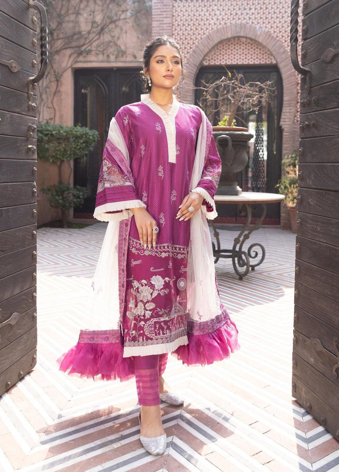 Aangan by Noorangi Embroidered Lawn Suits Unstitched 3 Piece NR22ANG Gull Lila - Luxury Collection