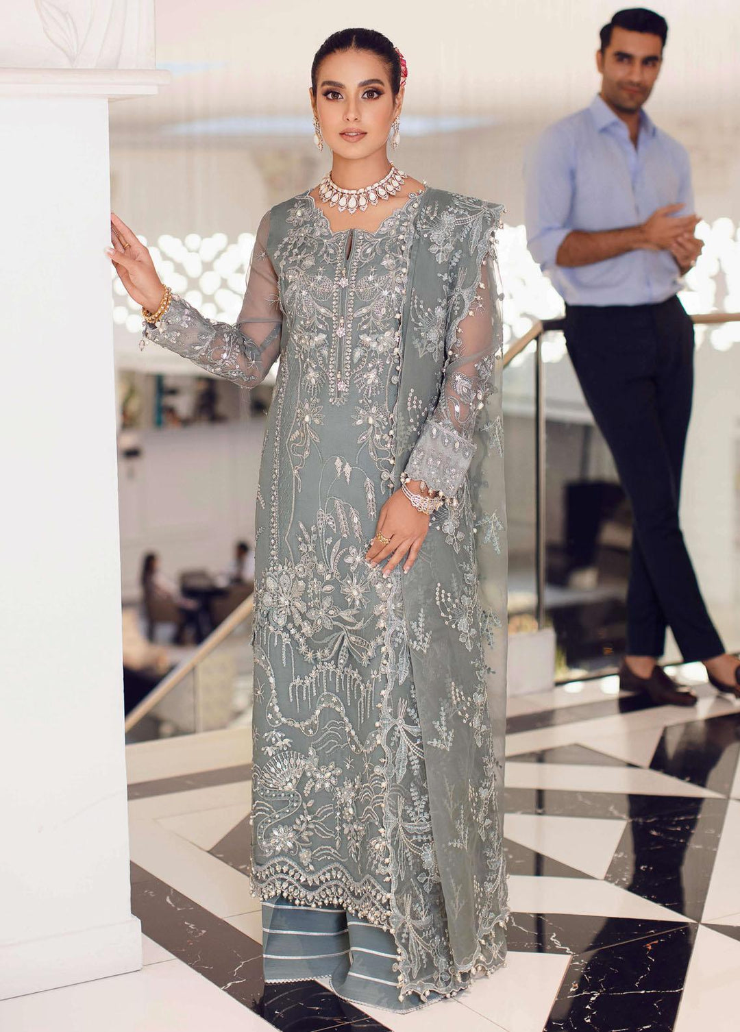 Celine by Alizeh Fashion Embroidered Chiffon Suit Unstitched 3 Piece AFB25C D-01 Rosie - Formals Collection