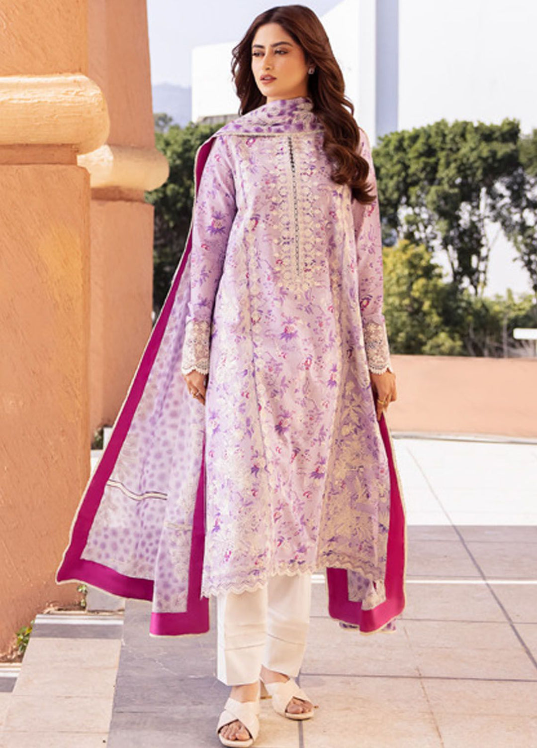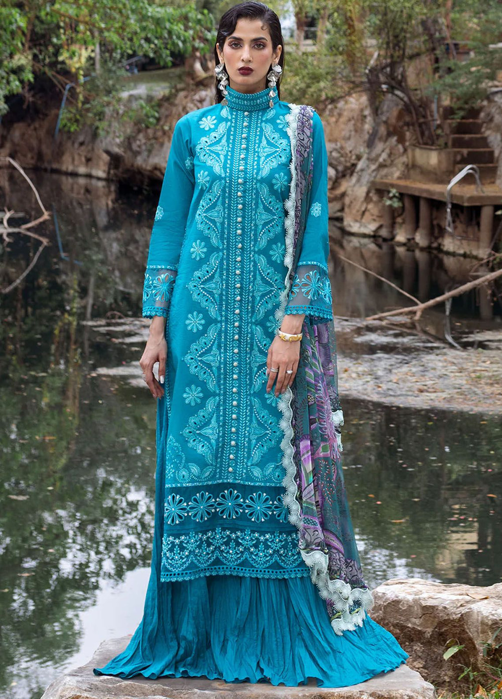 Dahlia by Roheenaz Embroidered Lawn Suits Unstitched 3 Piece RNZ24D D-01A Delphinium - Summer Collection