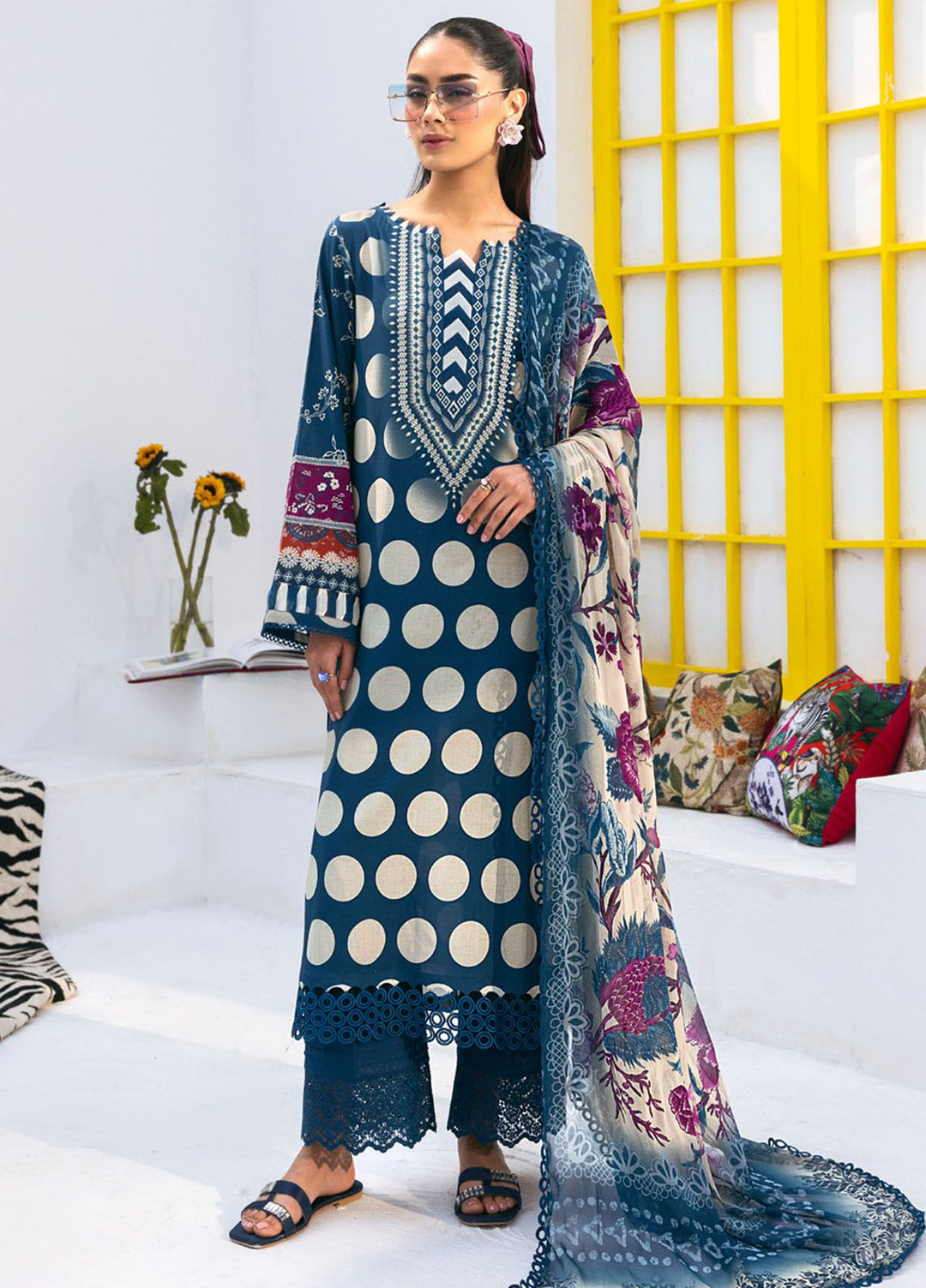 Gulaal Embroidered Lawn Suits Unstitched 3 Piece GL24LL D-05 Deniz - Summer Collection