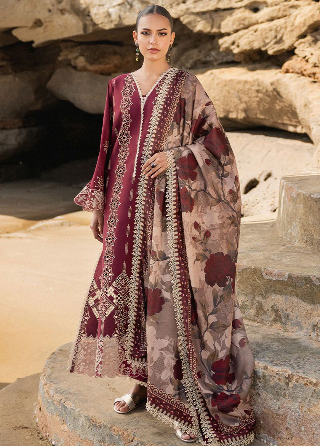 Zainab Chottani Chikankari Lawn Suits Unstitched 3 Piece ZC24CL D-6A Laali - Summer Collection
