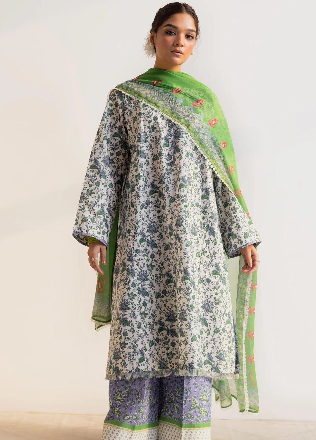 Cross Stitch Chikankari Lawn Suits Unstitched 3 Piece CS24C Lilac Bloom - Summer Collection