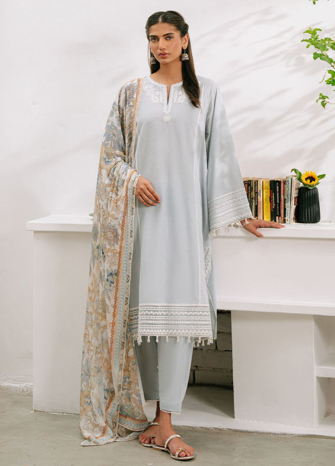 Zuri Pret Embroiered Cotton 3 Piece Suit Afshan AK-5056 Grey