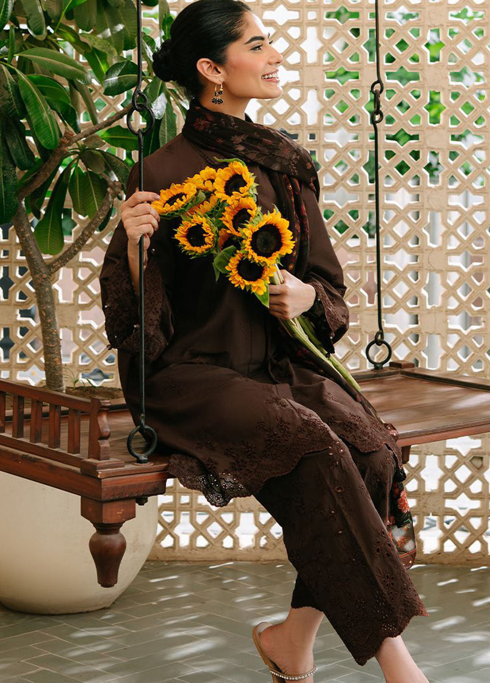Zuri Pret Embroidered Lawn 3 Piece Suit Nureh JK-17 Mocha Brown