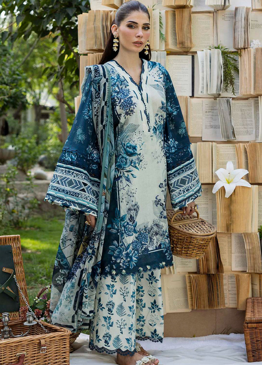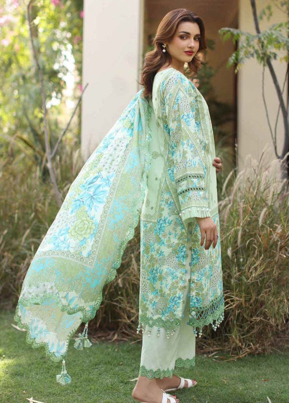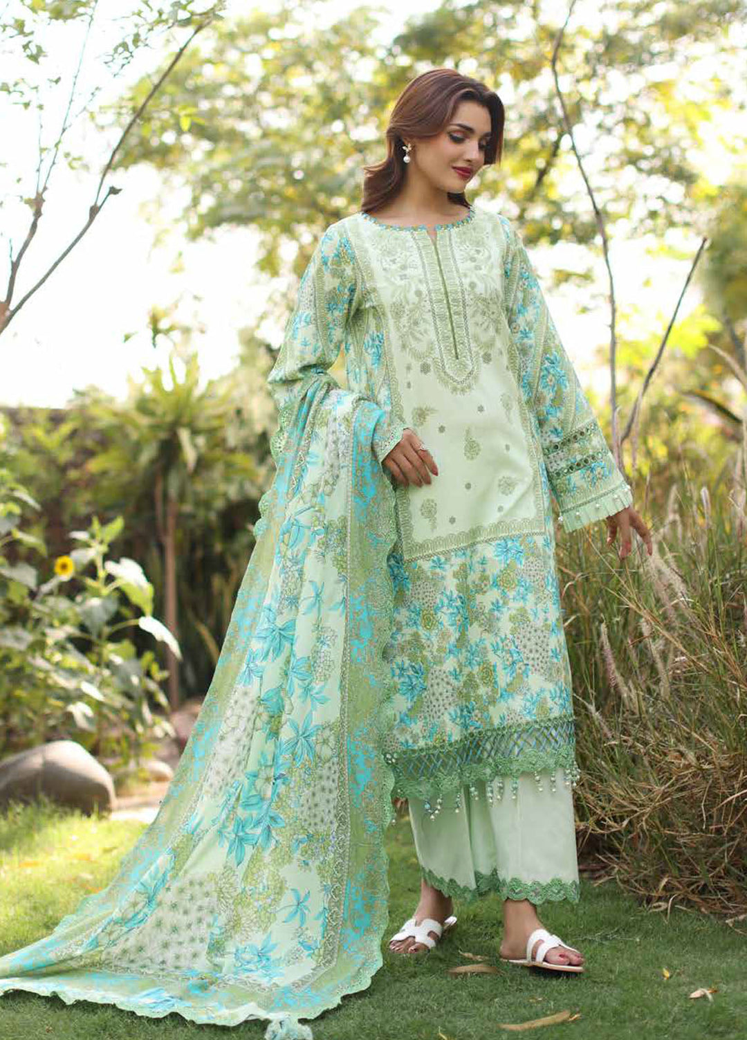 Elaf Printed Lawn Suits Unstitched 3 Piece EF25PS ECD-01B Azure Fern - Summer Collection