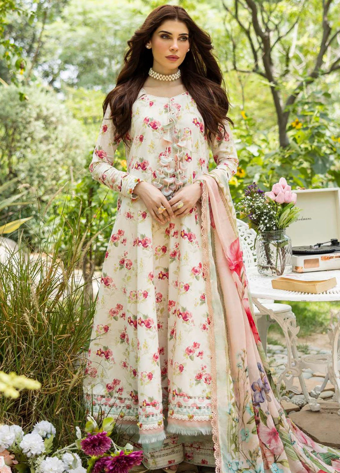 Elaf Printed Lawn Suits Unstitched 3 Piece EF25PS ECD-02A Ivory Peony - Summer Collection