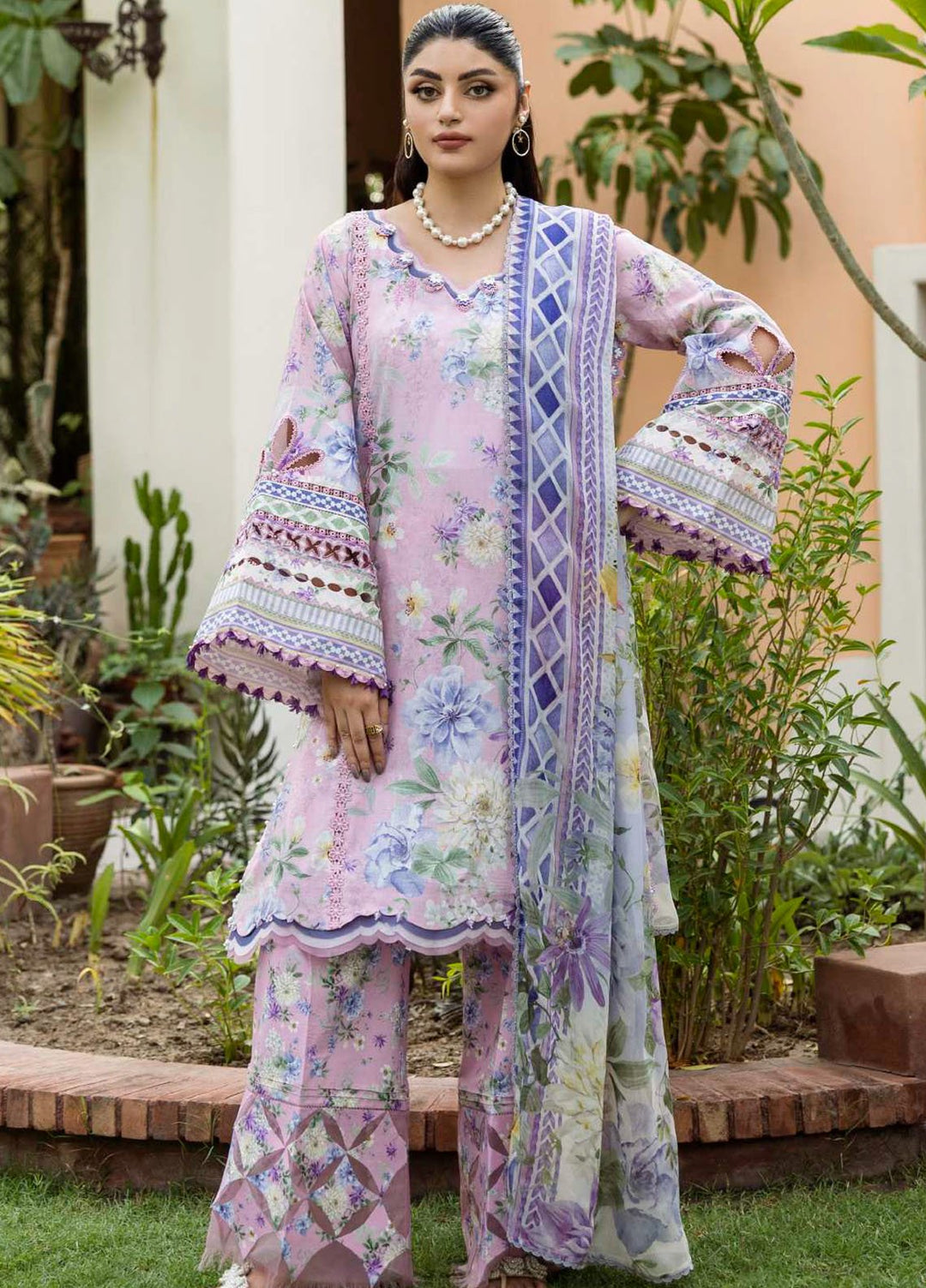 Elaf Printed Lawn Suits Unstitched 3 Piece EF25PS ECD-06A Blossomea - Summer Collection