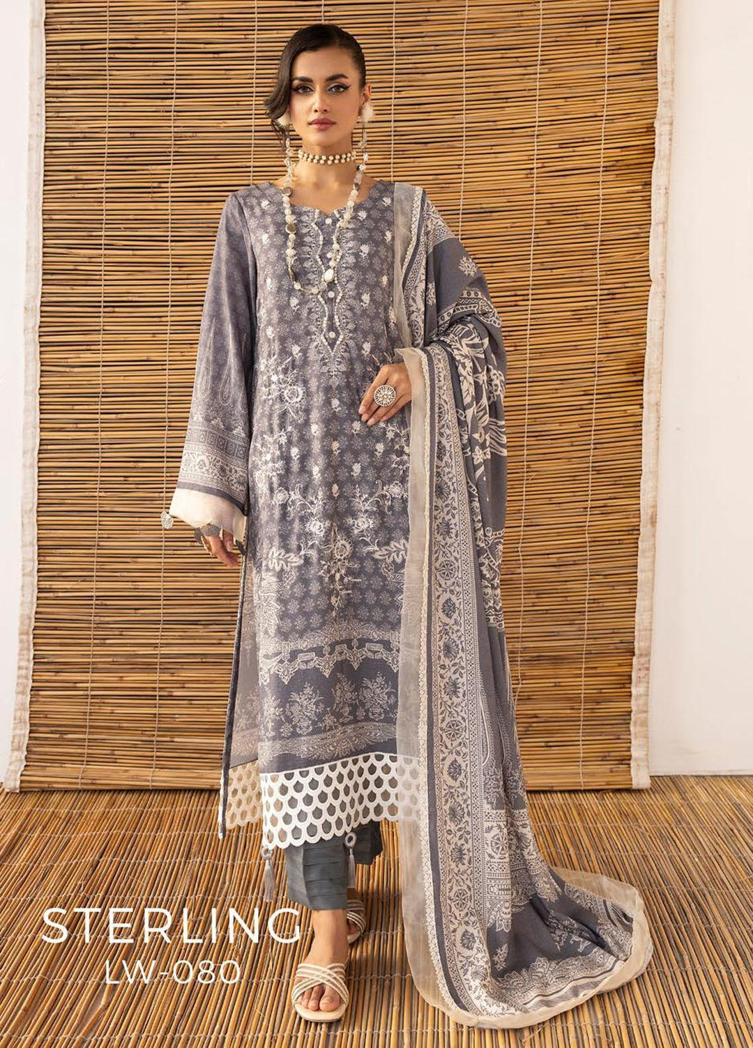 Vintage By Lala Textiles Embroidered Karandi Suits Unstitched 3 Piece LT23V LW-080 Sterling - Winter Collection