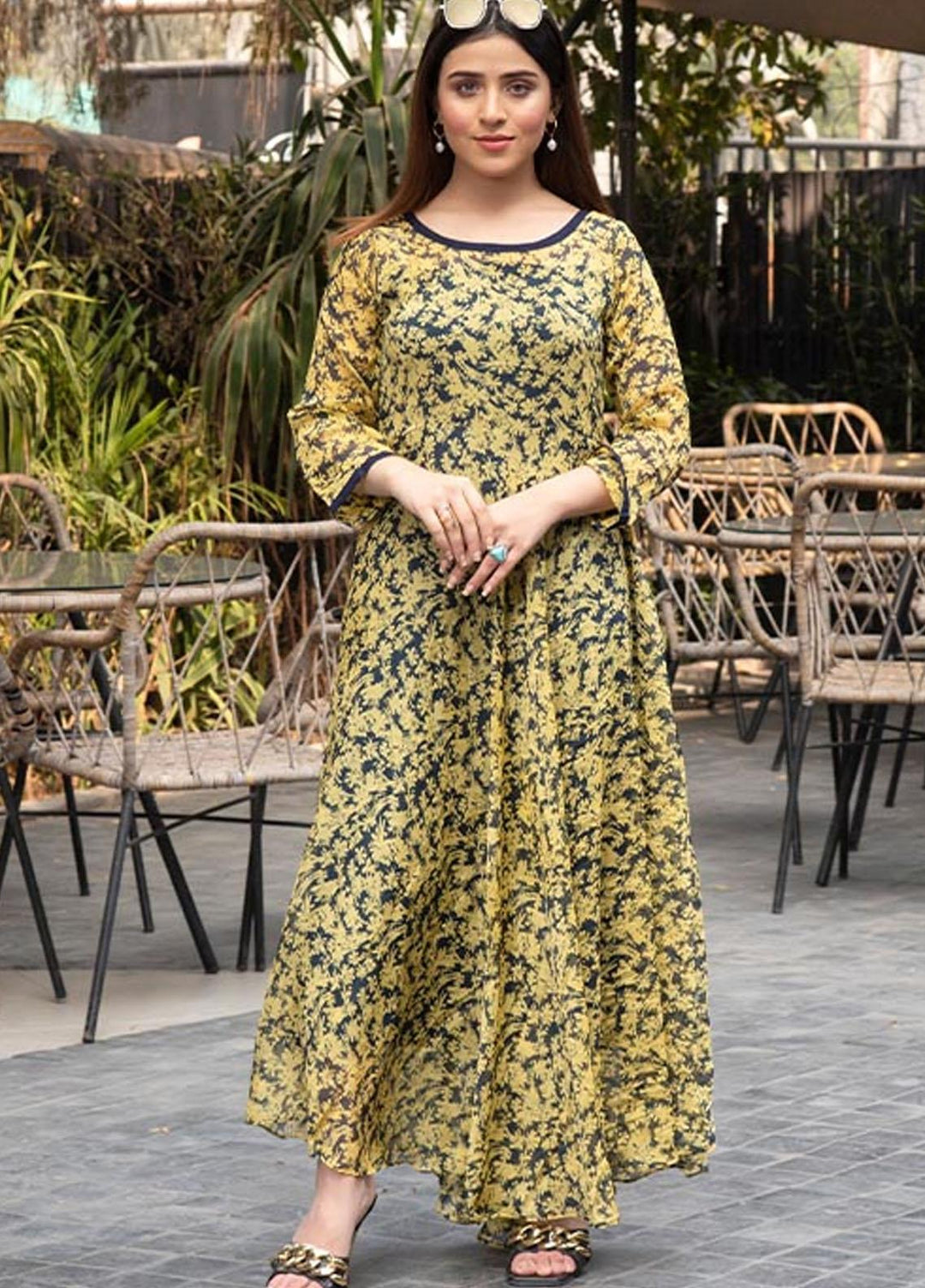 Nazmina Pret Chiffon Western Dress NZ23TSN YELLOW FELLOW FR-586
