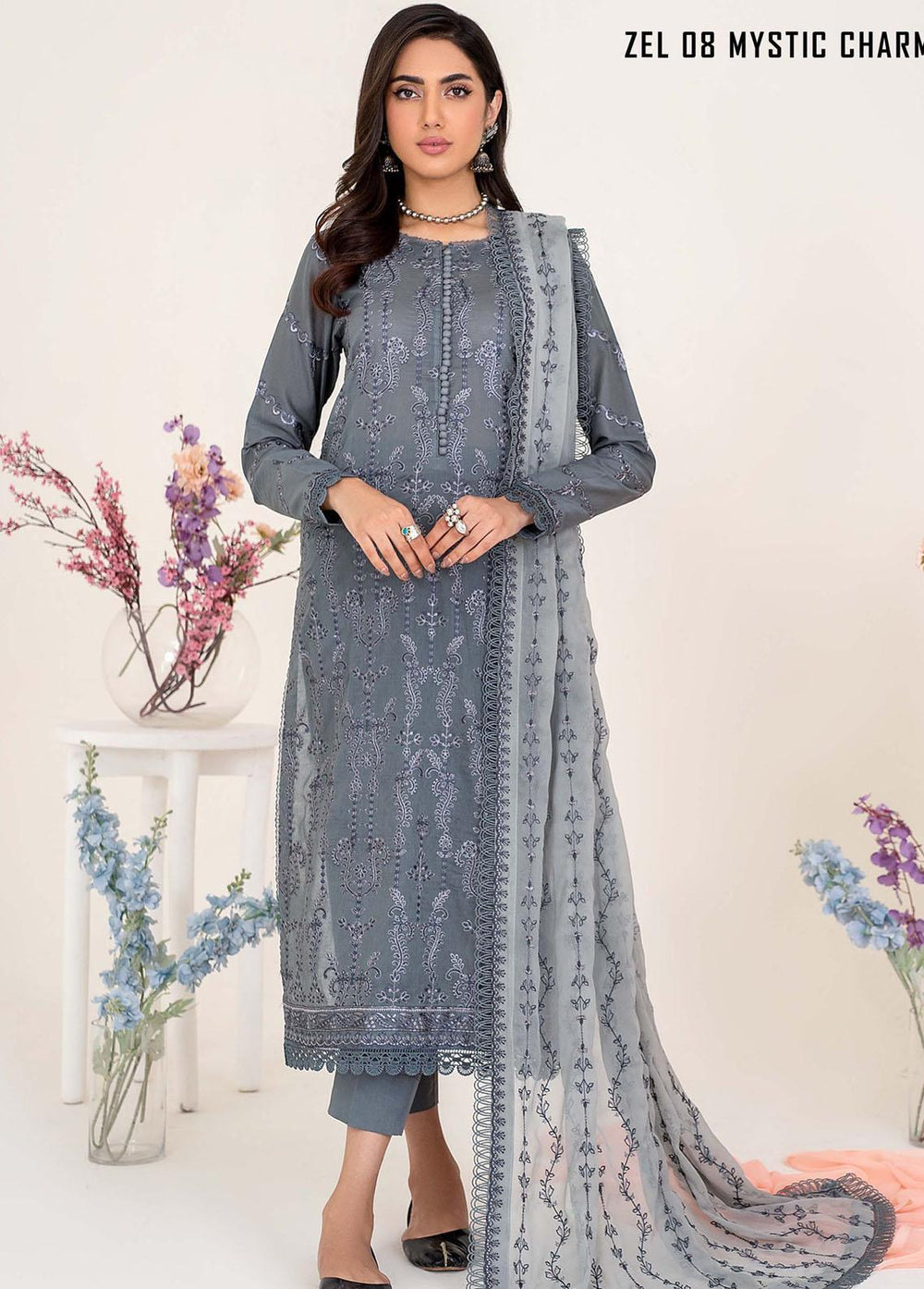 Zarif Embroidered Lawn Suits Unstitched 3 Piece ZF23L ZEL-08 Mystic Charm - Luxury Collection
