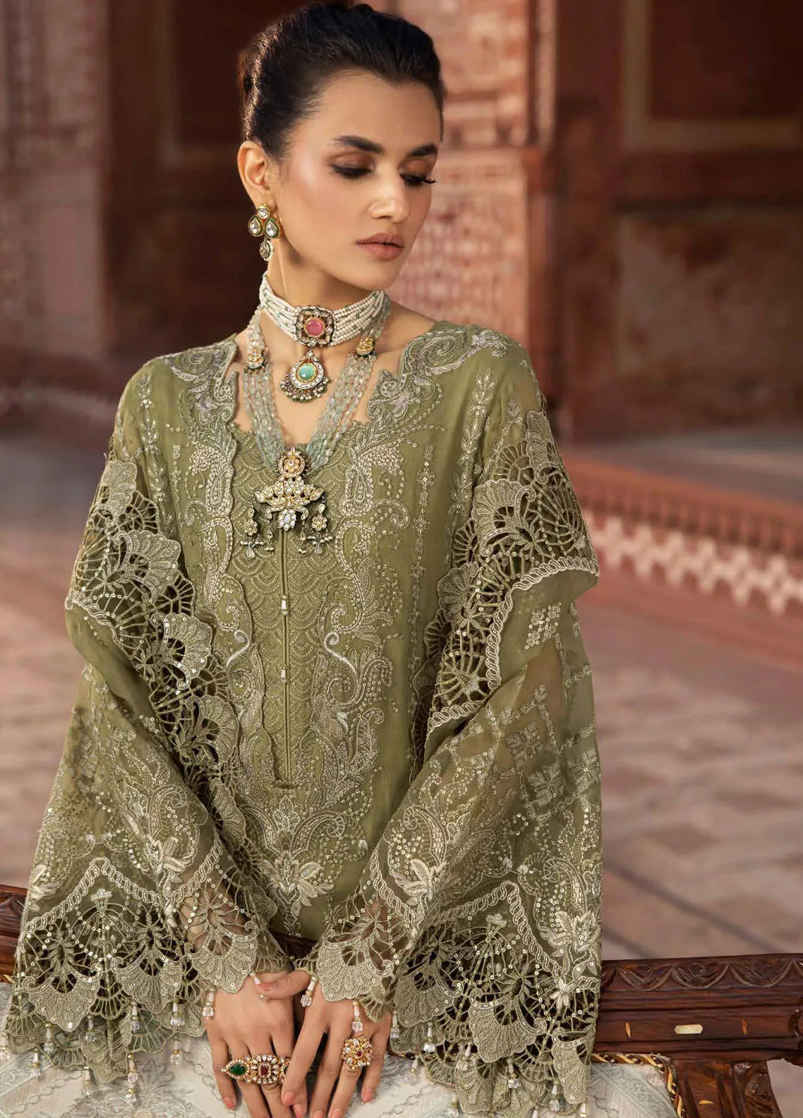 Lavish Premium Embroidered Chiffon Suits Unstitched 3 Piece LVP25UL D-07 Dark Tan - Formal Collection